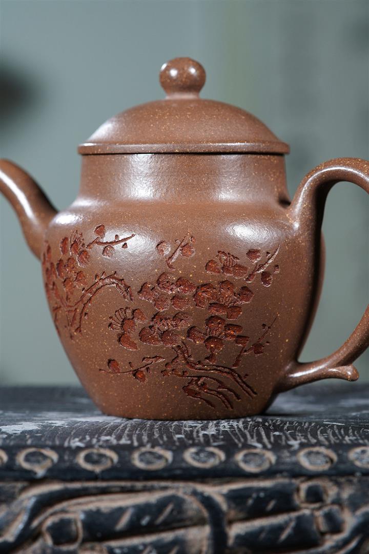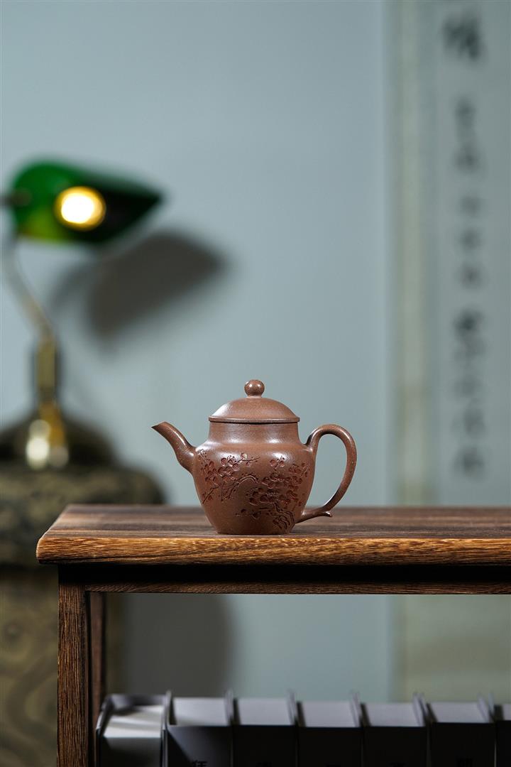 降坡泥竹影曲泉紫砂壺POT5887
