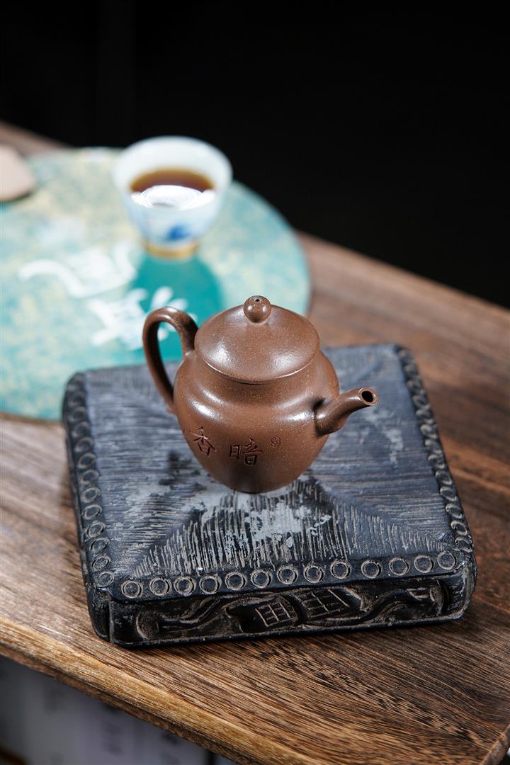 棗紅泥觀山漢瓦紫砂壺POT5884