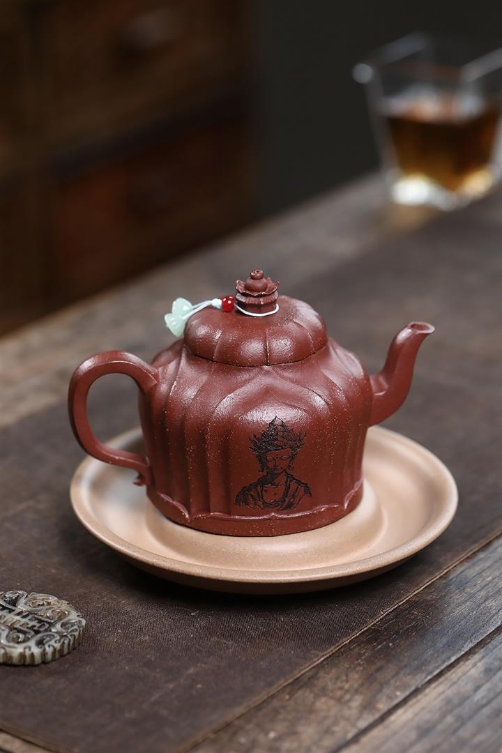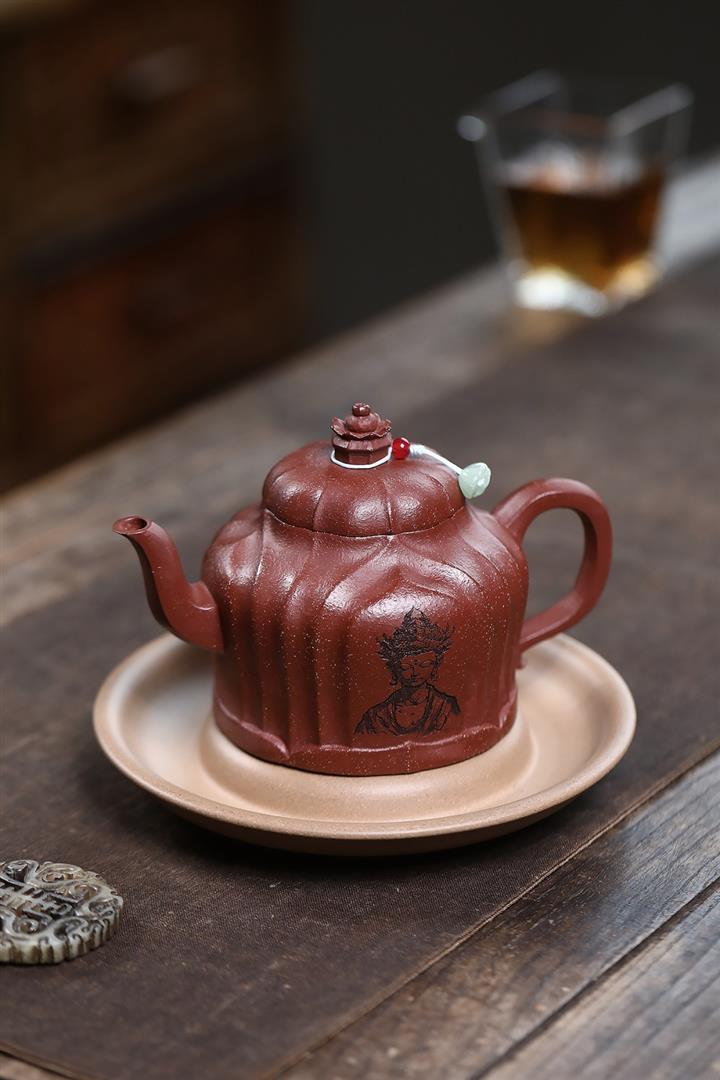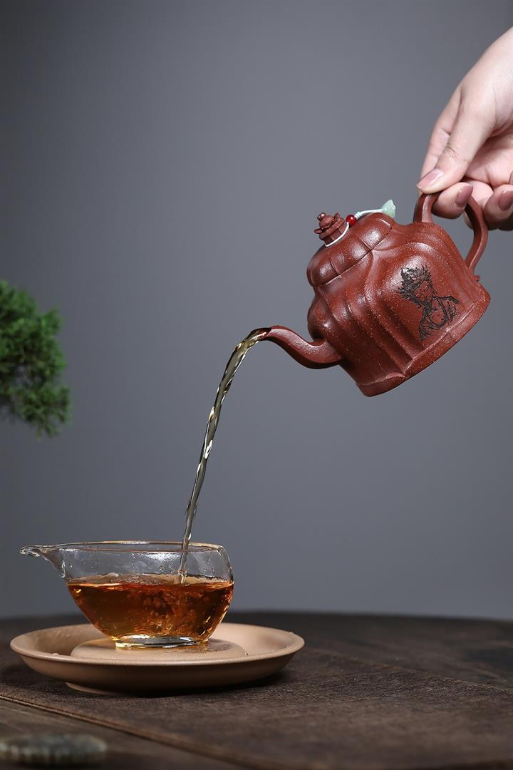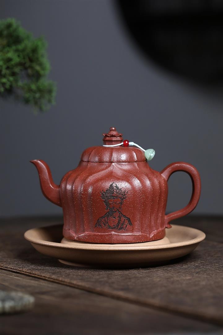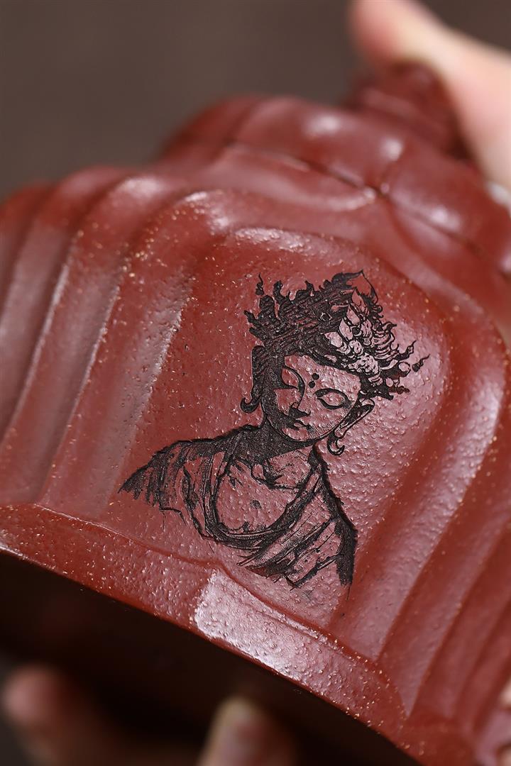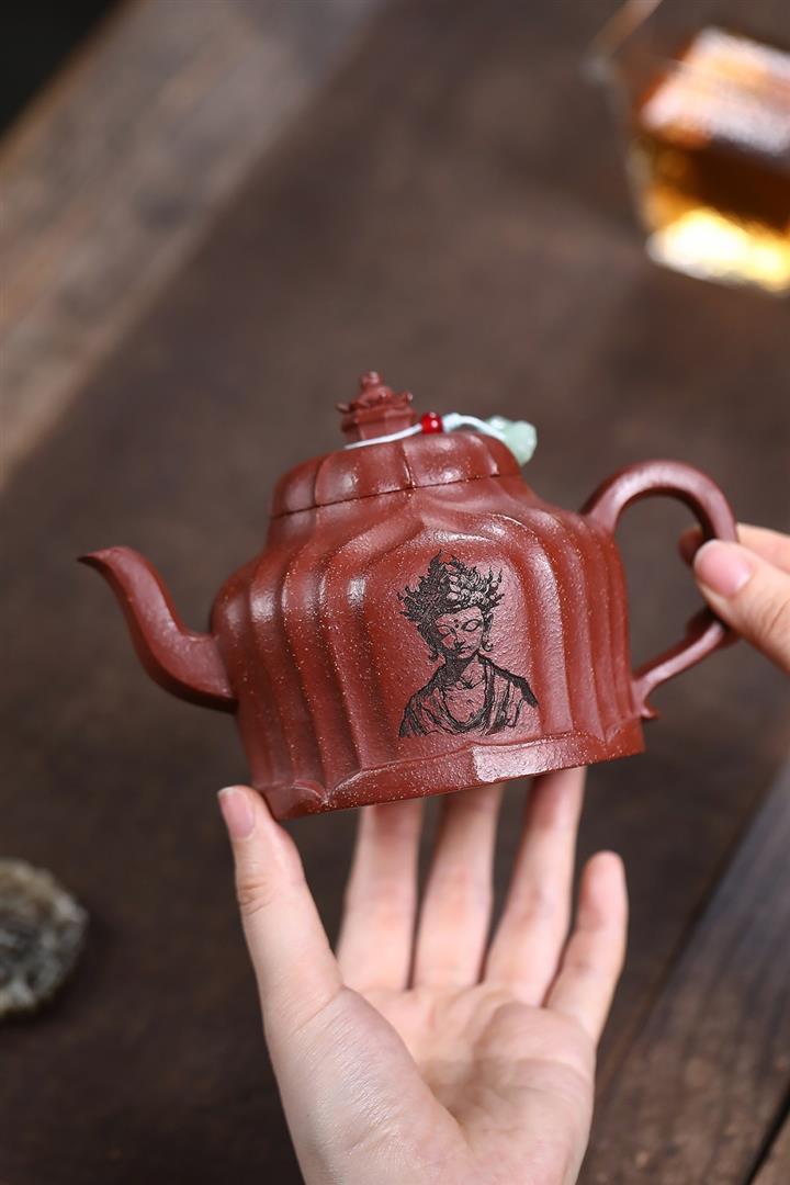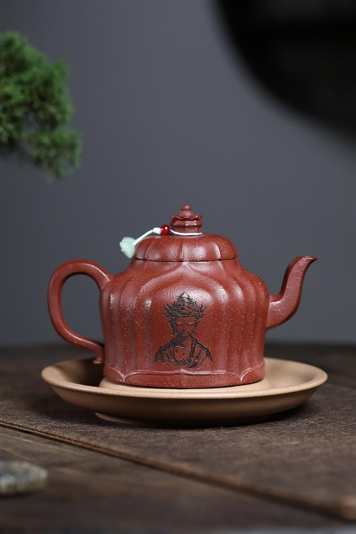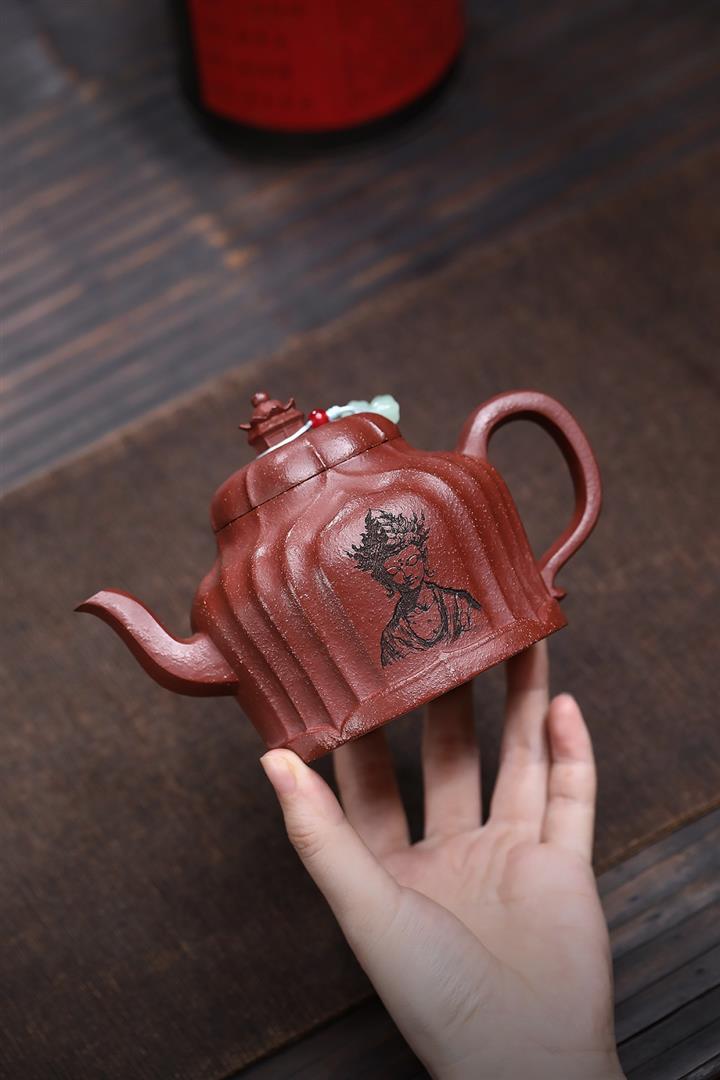 原礦紅降坡滿刻松鼠漢瓦茶壺POT7163