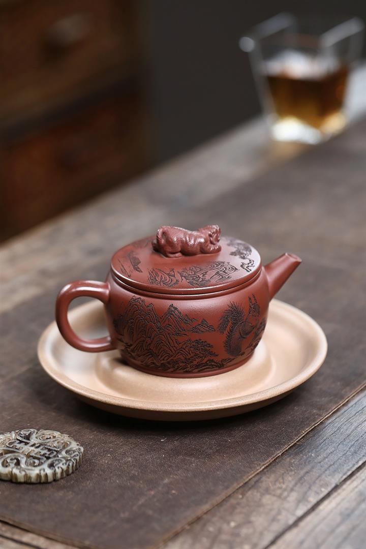 原礦紅降坡滿刻松鼠漢瓦茶壺POT7163