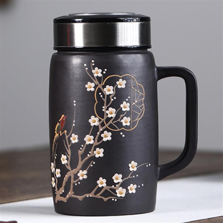 原礦紫砂泥梅花泥繪保溫杯POT7382