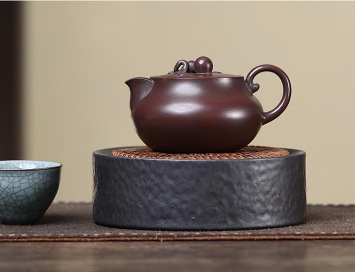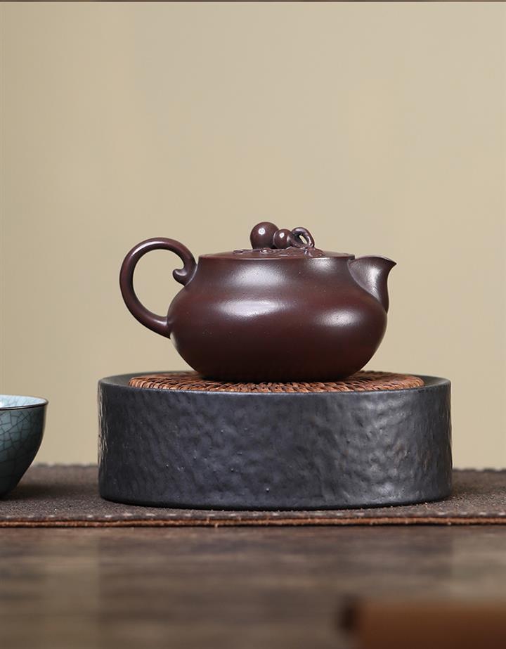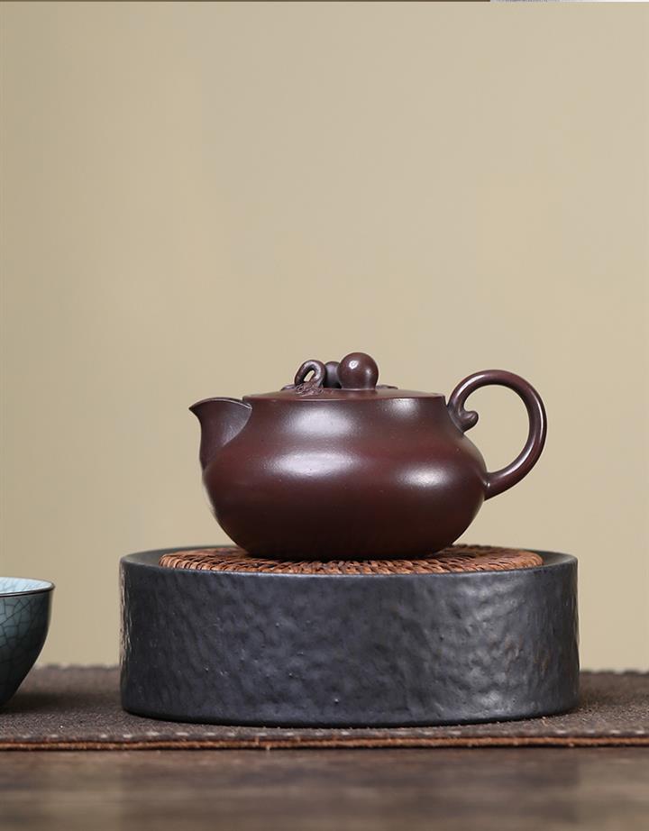【泥料特點】砂土氣重,似淳實農民,日久使用,漸露鋒芒,養成變化,溫潤莊重。紫砂是壹種雙重氣孔結構的多孔性材質,氣孔微細,密度高。用紫砂壺沏茶,不失原味,且香不渙散,得茶之真香真味。紫砂使用越久,壺身色澤越發光亮照人,氣韻溫雅。紫砂壺長久使用器身會因撫摸擦拭,變得越發溫潤光澤。