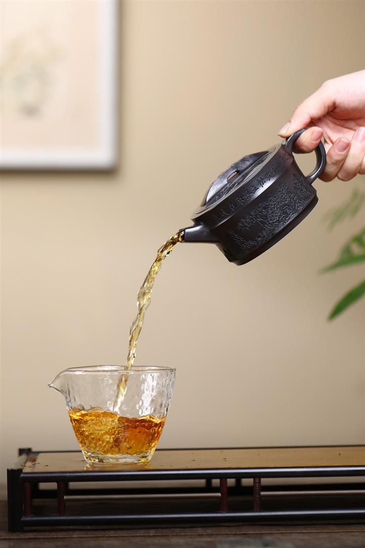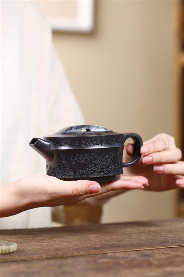 【泥料特點】砂土氣重,似淳實農民,日久使用,漸露鋒芒,養成變化,溫潤莊重。紫砂是壹種雙重氣孔結構的多孔性材質,氣孔微細,密度高。用紫砂壺沏茶,不失原味,且香不渙散,得茶之真香真味。紫砂使用越久,壺身色澤越發光亮照人,氣韻溫雅。紫砂壺長久使用器身會因撫摸擦拭,變得越發溫潤光澤。
