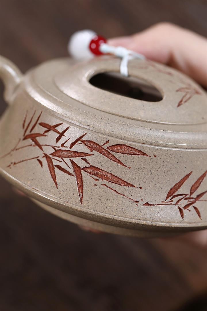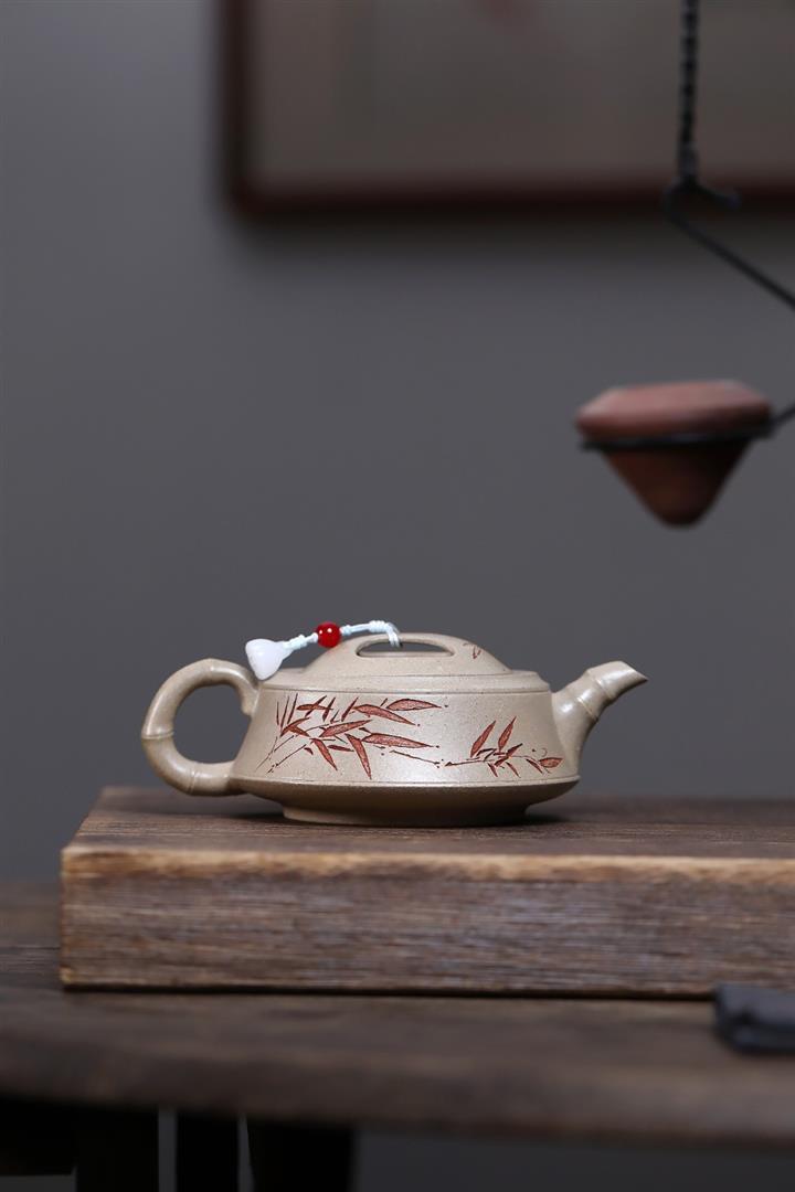 【作品介紹】此款壺形線條流暢,壺把,壺嘴,壺身壹氣呵成栩栩如生,是收藏把玩的好壺,泥料色澤古樸典雅,日久使用,漸露鋒芒,養成變化快,溫潤莊重,用其泡茶,使用的年代久,壺身就溫潤,泡出來的茶湯也就醇郁芳馨。