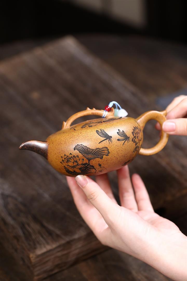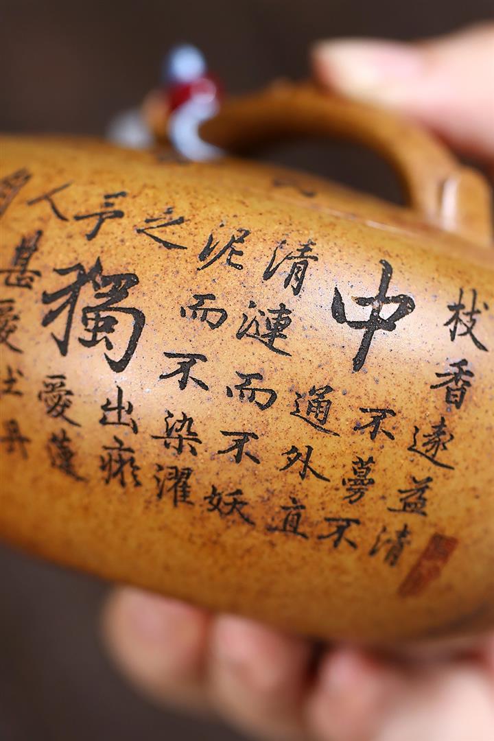 【作品介紹】此款壺形線條流暢,壺把,壺嘴,壺身壹氣呵成栩栩如生,是收藏把玩的好壺,泥料色澤古樸典雅,日久使用,漸露鋒芒,養成變化快,溫潤莊重,用其泡茶,使用的年代久,壺身就溫潤,泡出來的茶湯也就醇郁芳馨。