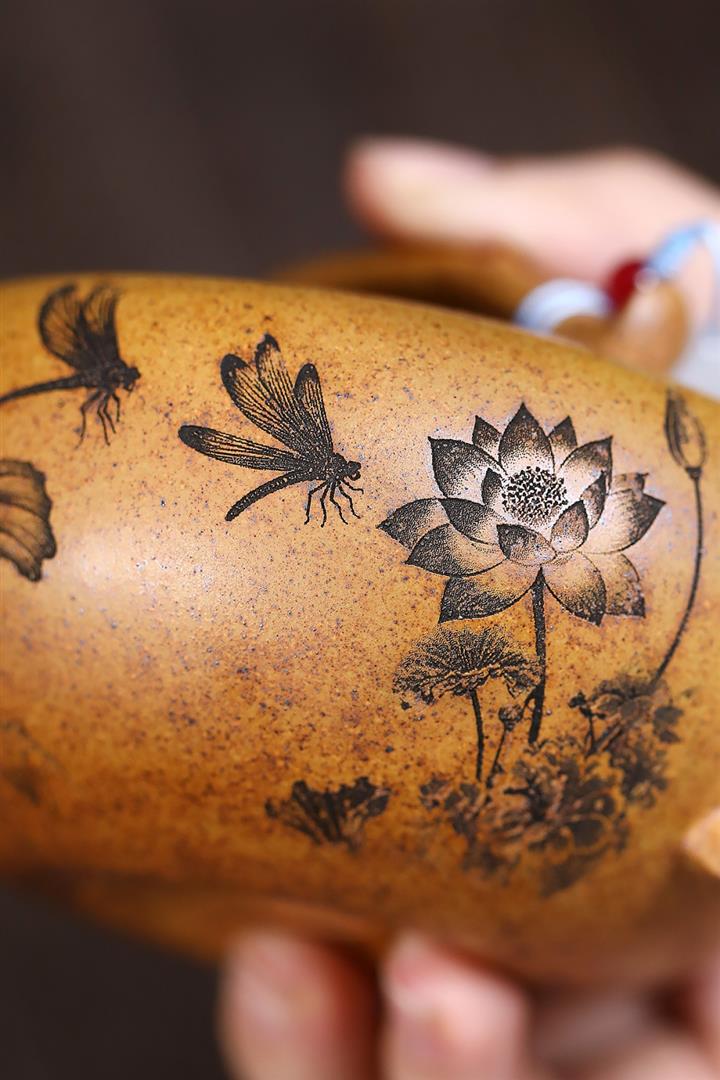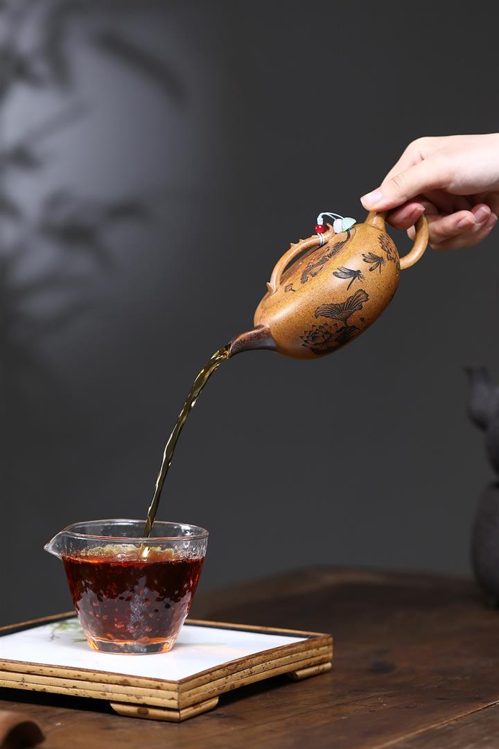【泥料特點】砂土氣重,似淳實農民,日久使用,漸露鋒芒,養成變化,溫潤莊重。紫砂是壹種雙重氣孔結構的多孔性材質,氣孔微細,密度高。用紫砂壺沏茶,不失原味,且香不渙散,得茶之真香真味。紫砂使用越久,壺身色澤越發光亮照人,氣韻溫雅。紫砂壺長久使用器身會因撫摸擦拭,變得越發溫潤光澤。
