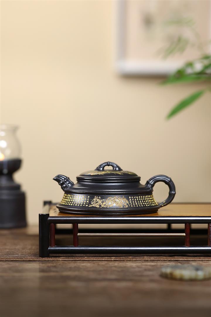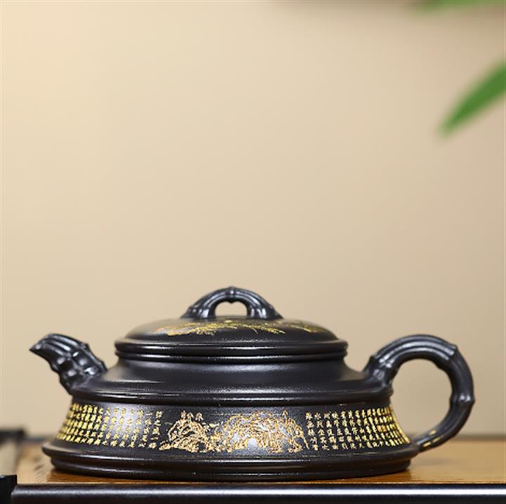 240cc玄鐵石黃雙線竹段蘭亭序集茶壺POT8272