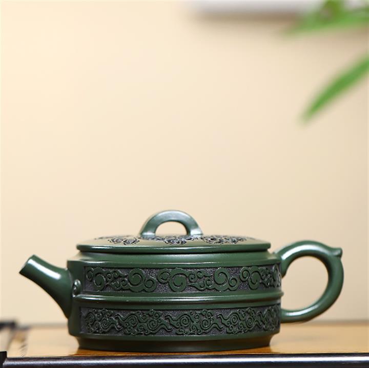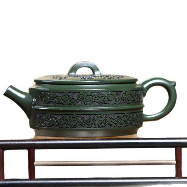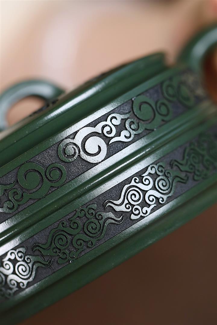 450cc原礦翡翠綠泥滿刻秦權茶壺POT8279