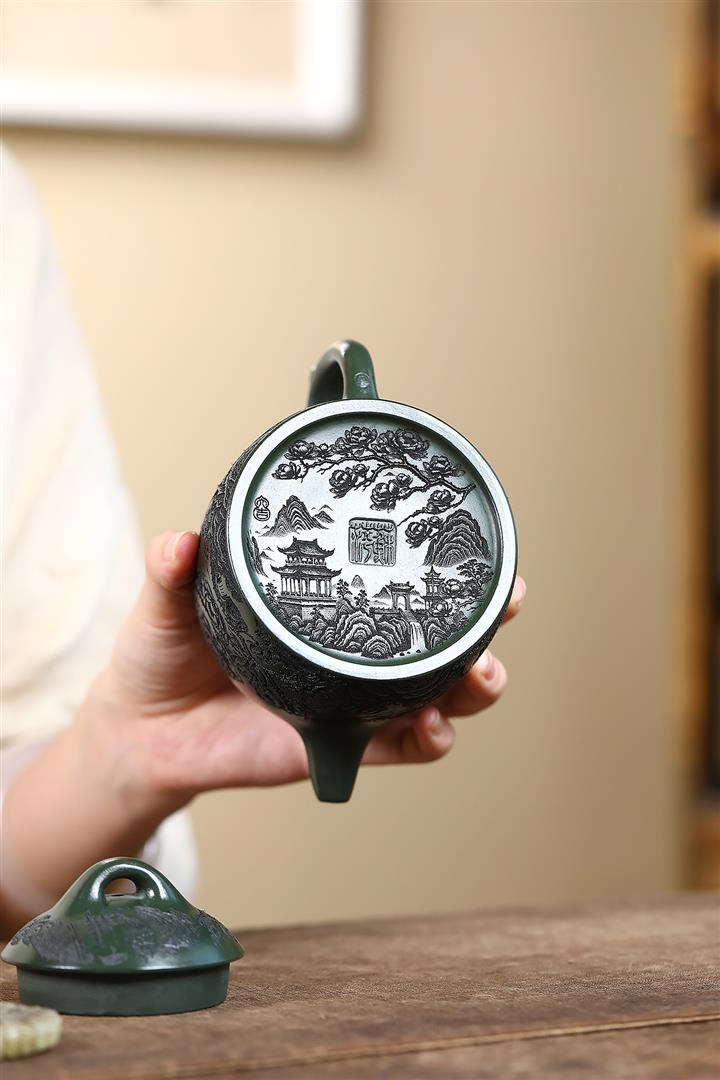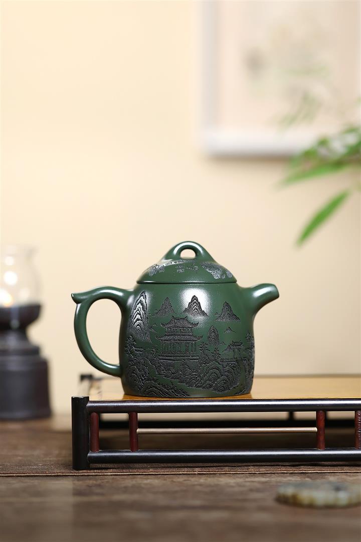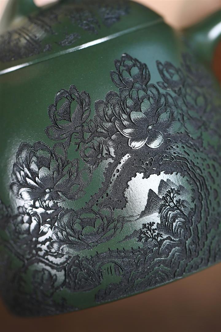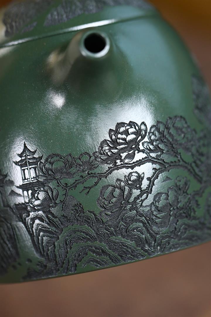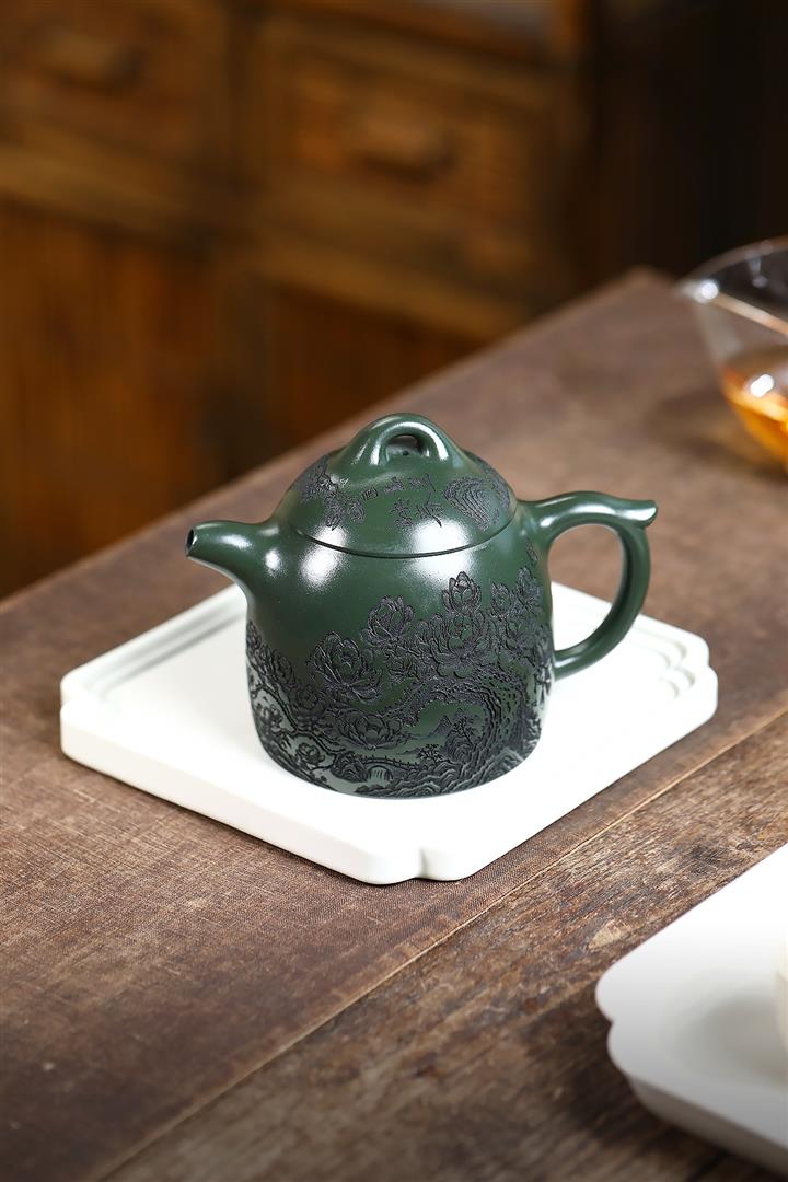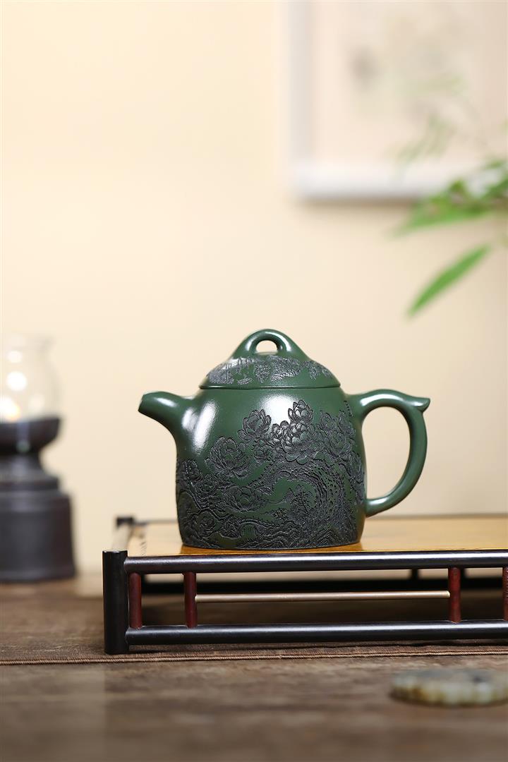 520cc翡翠綠泥花開富貴牡丹寒江茶壺POT8281
