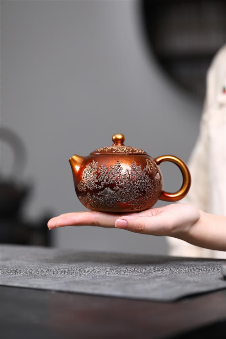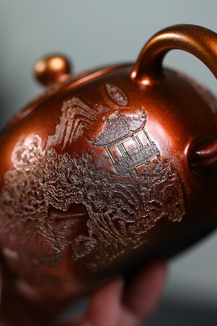 450cc原礦紫泥滿刻大德鐘茶壺POT8290