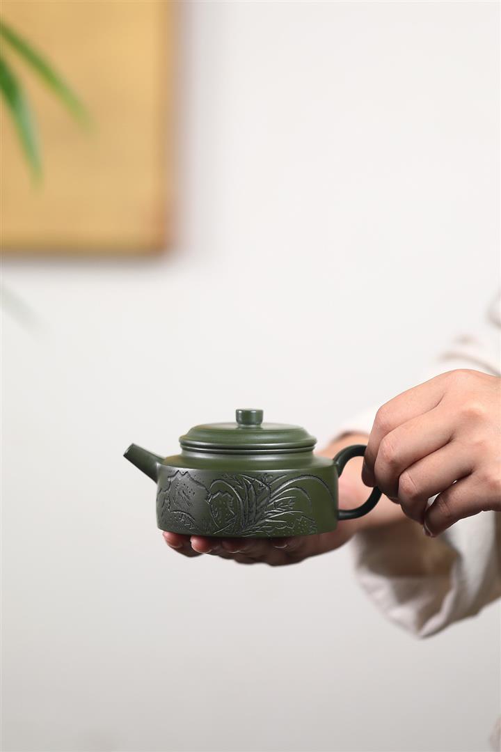 【作品介紹】此款壺形線條流暢,壺把,壺嘴,壺身壹氣呵成栩栩如生,是收藏把玩的好壺,泥料色澤古樸典雅,日久使用,漸露鋒芒,養成變化快,溫潤莊重,用其泡茶,使用的年代久,壺身就溫潤,泡出來的茶湯也就醇郁芳馨。