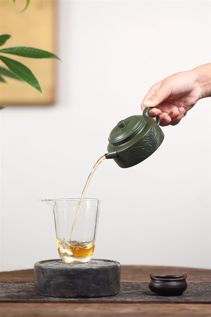 【泥料特點】砂土氣重,似淳實農民,日久使用,漸露鋒芒,養成變化,溫潤莊重。紫砂是壹種雙重氣孔結構的多孔性材質,氣孔微細,密度高。用紫砂壺沏茶,不失原味,且香不渙散,得茶之真香真味。紫砂使用越久,壺身色澤越發光亮照人,氣韻溫雅。紫砂壺長久使用器身會因撫摸擦拭,變得越發溫潤光澤。