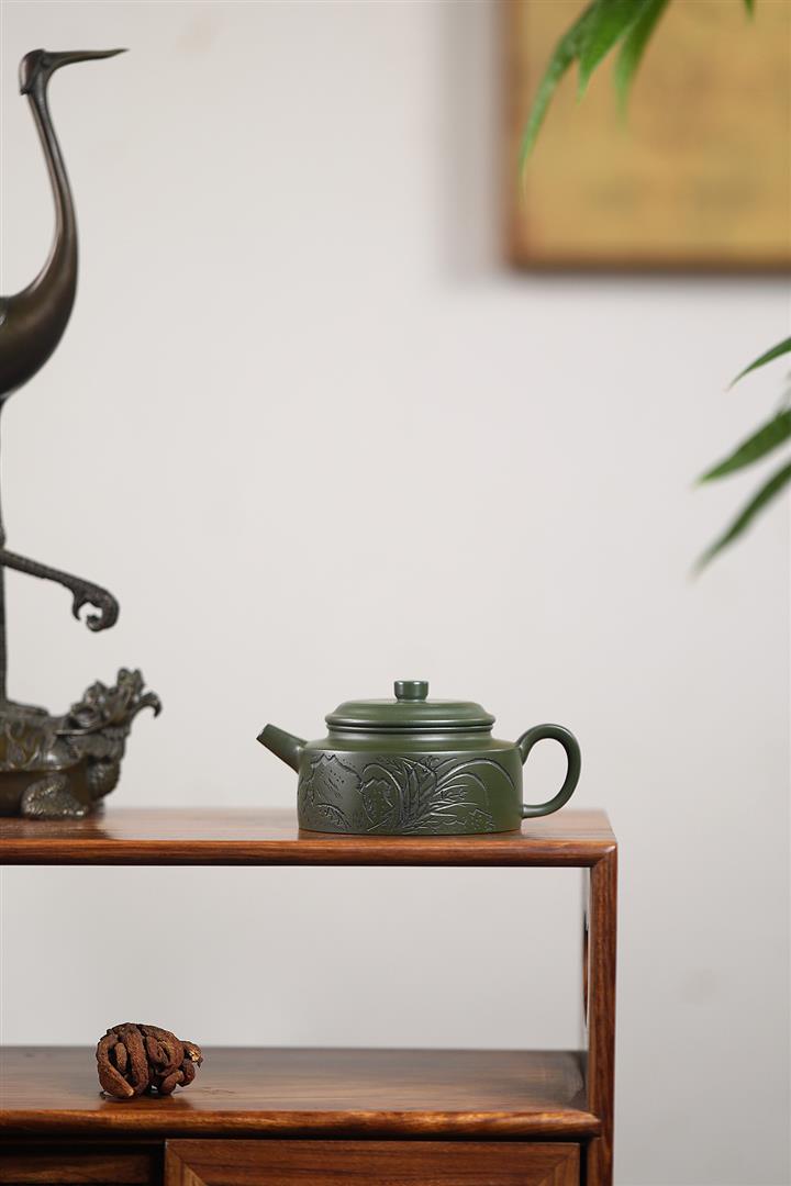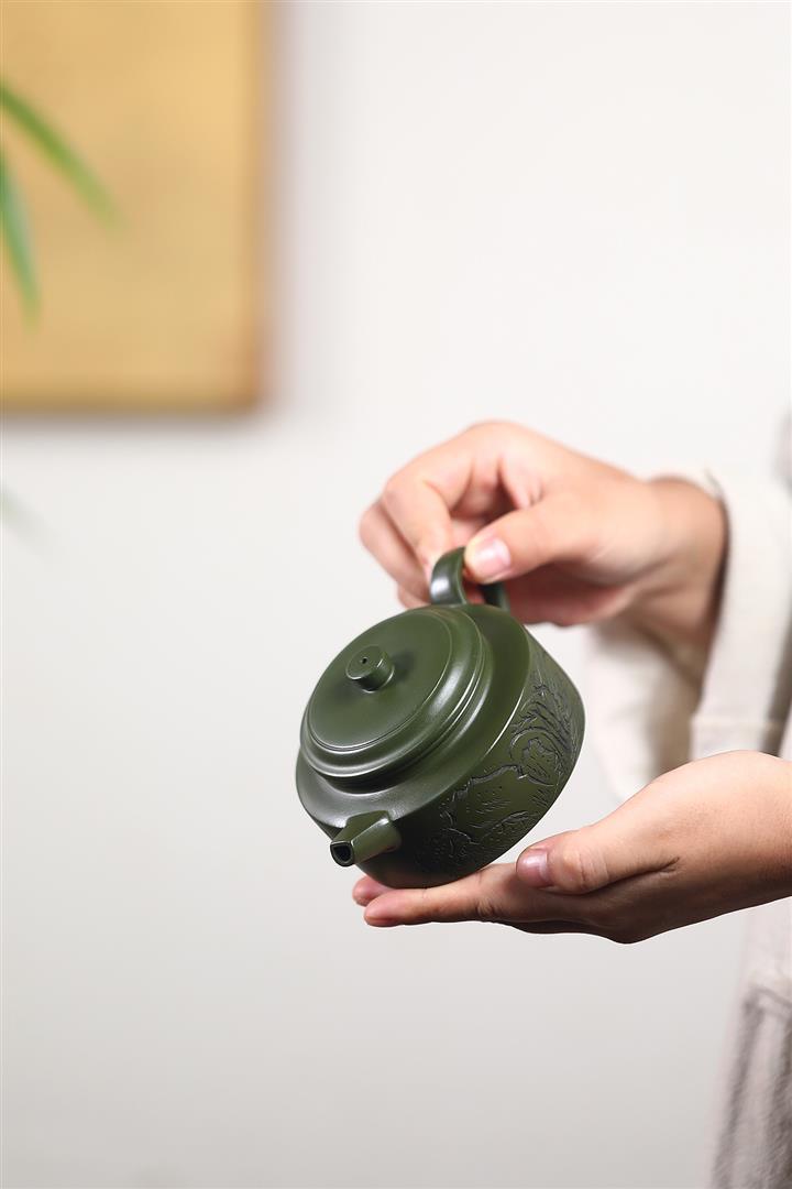 450cc原礦紫泥滿刻大德鐘茶壺POT8290