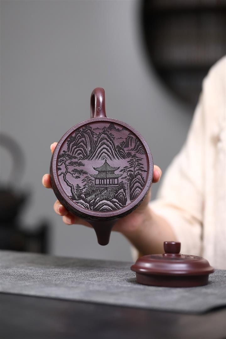 450cc原礦紫泥滿刻大德鐘茶壺POT8290