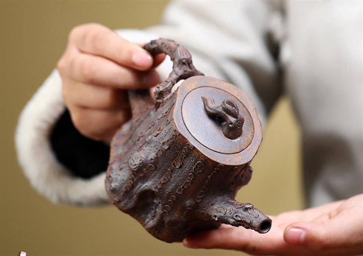 【泥料特點】砂土氣重,似淳實農民,日久使用,漸露鋒芒,養成變化,溫潤莊重。紫砂是壹種雙重氣孔結構的多孔性材質,氣孔微細,密度高。用紫砂壺沏茶,不失原味,且香不渙散,得茶之真香真味。紫砂使用越久,壺身色澤越發光亮照人,氣韻溫雅。紫砂壺長久使用器身會因撫摸擦拭,變得越發溫潤光澤。