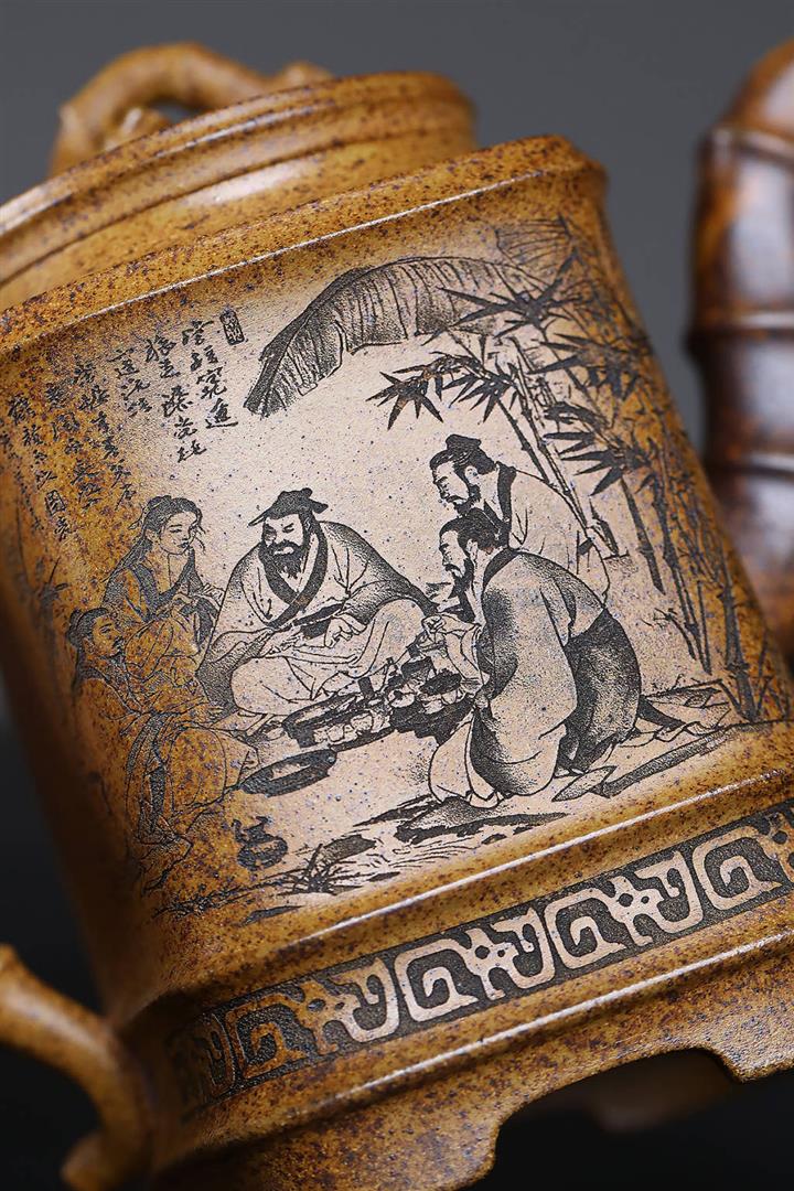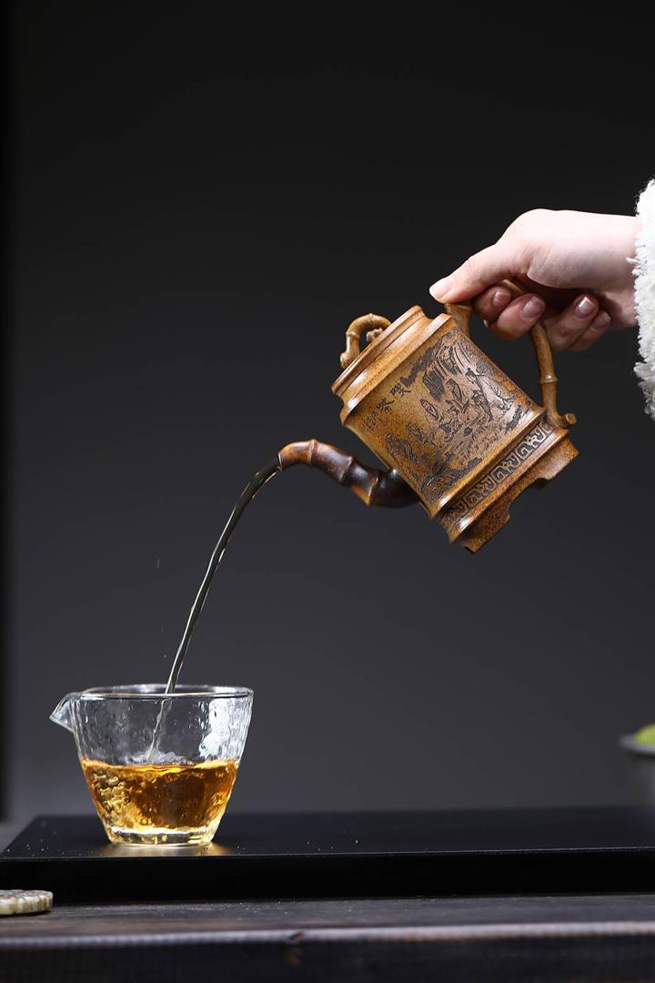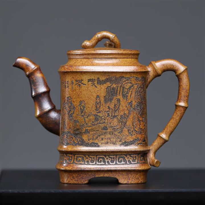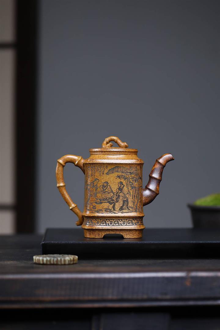 350cc原礦墨綠泥通身刻竹之清雅茶壺POT8302