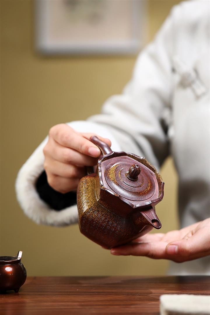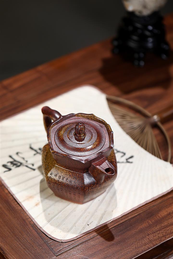 290cc段泥古法柴燒六方僧帽茶壺POT8294