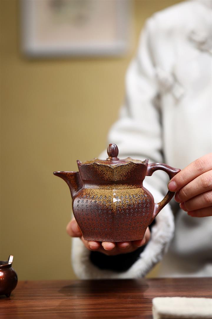 300cc原礦玄鐵石黃黑料報春茶壺POT8297