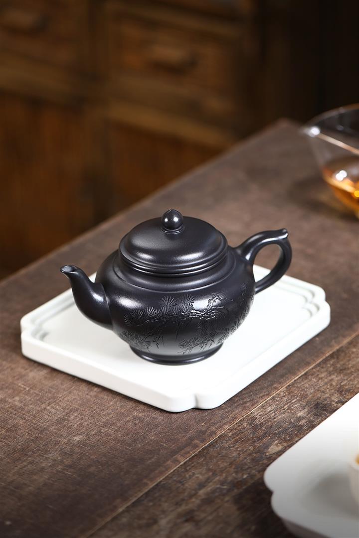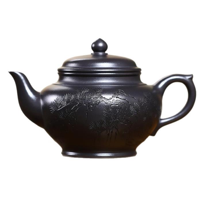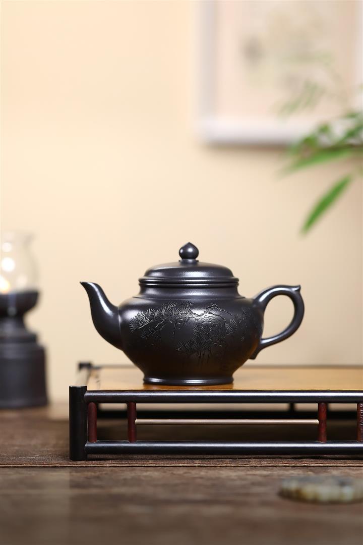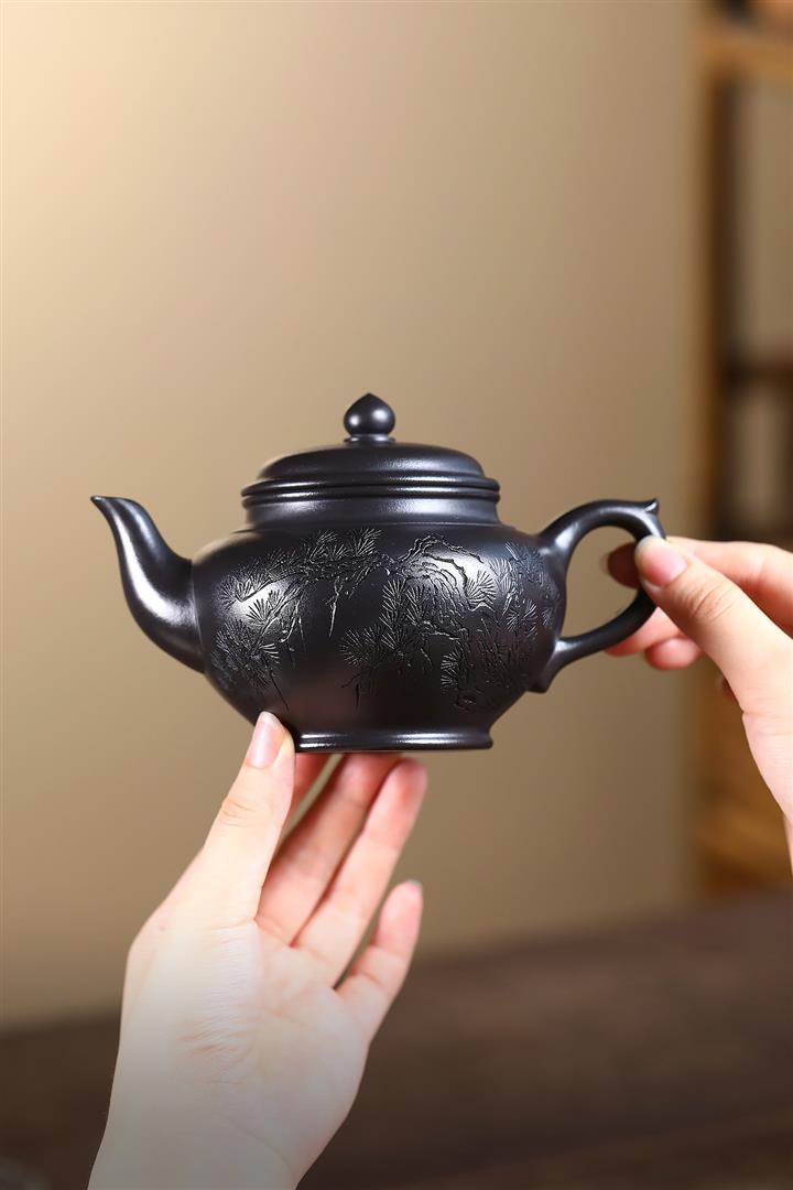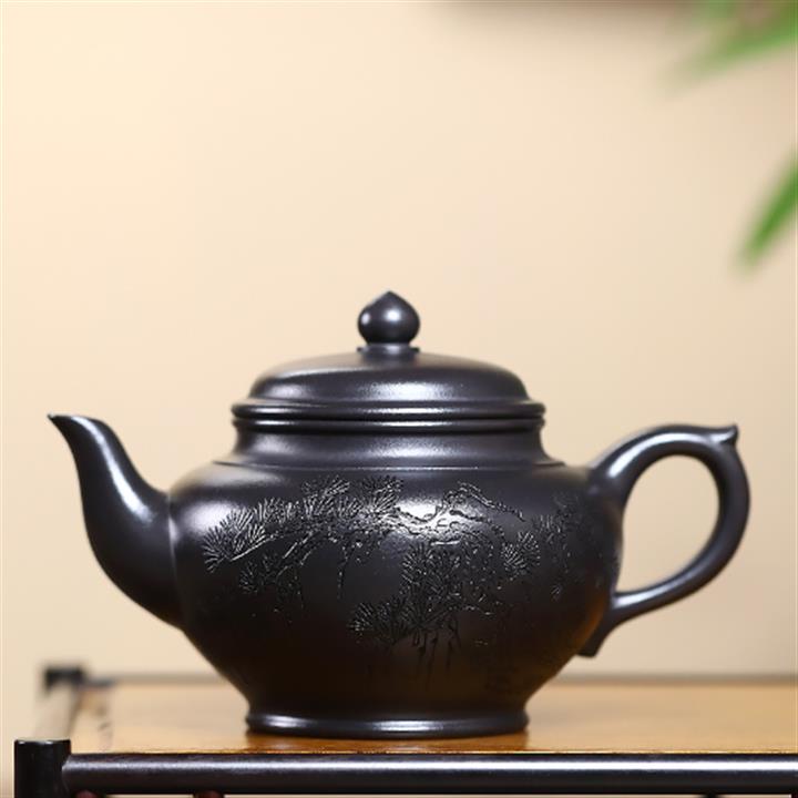 400cc原礦墨綠泥刻繪如意松趣茶壺POT8304