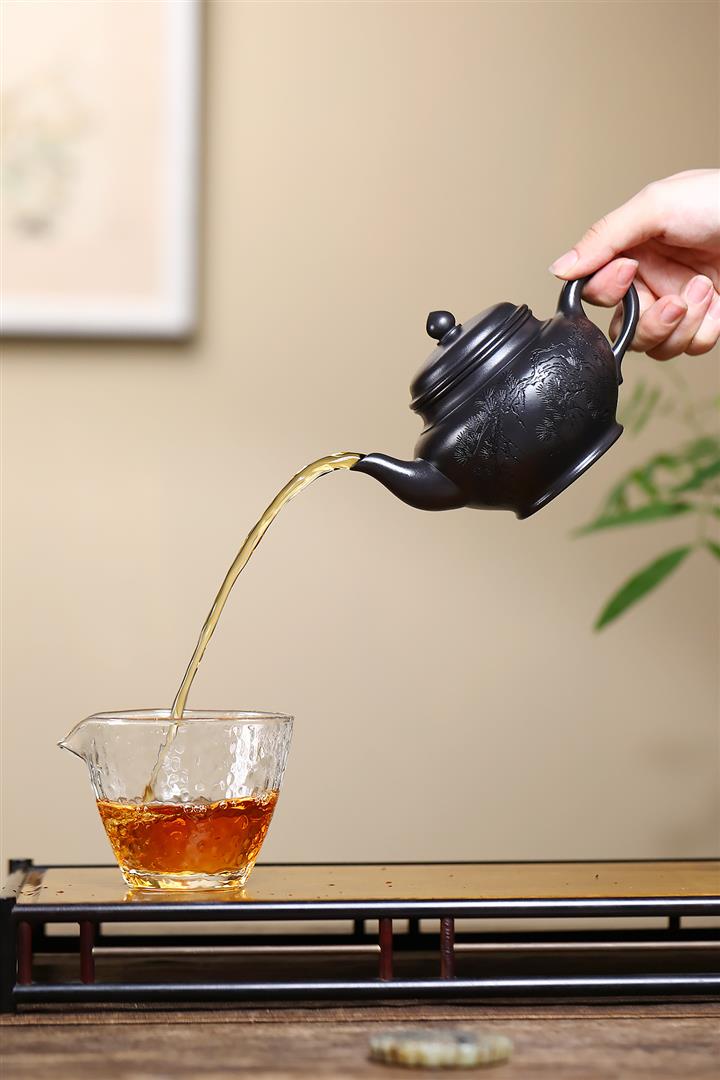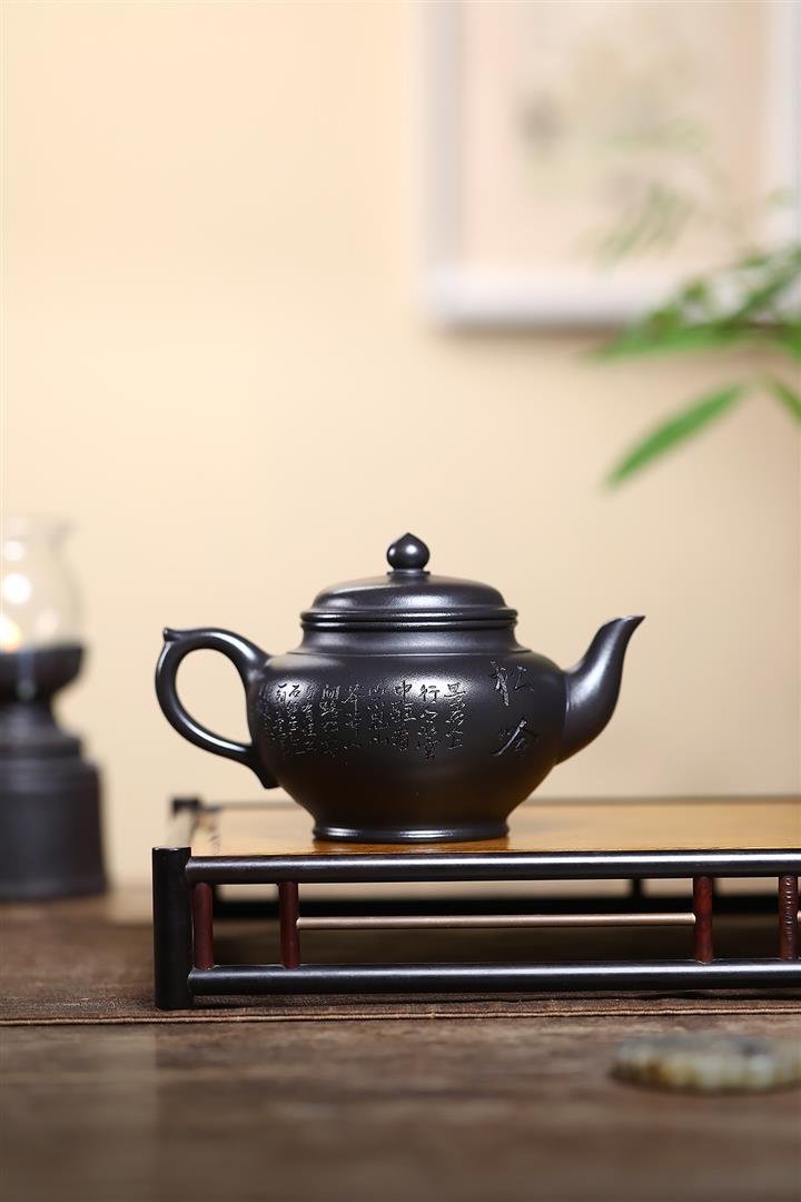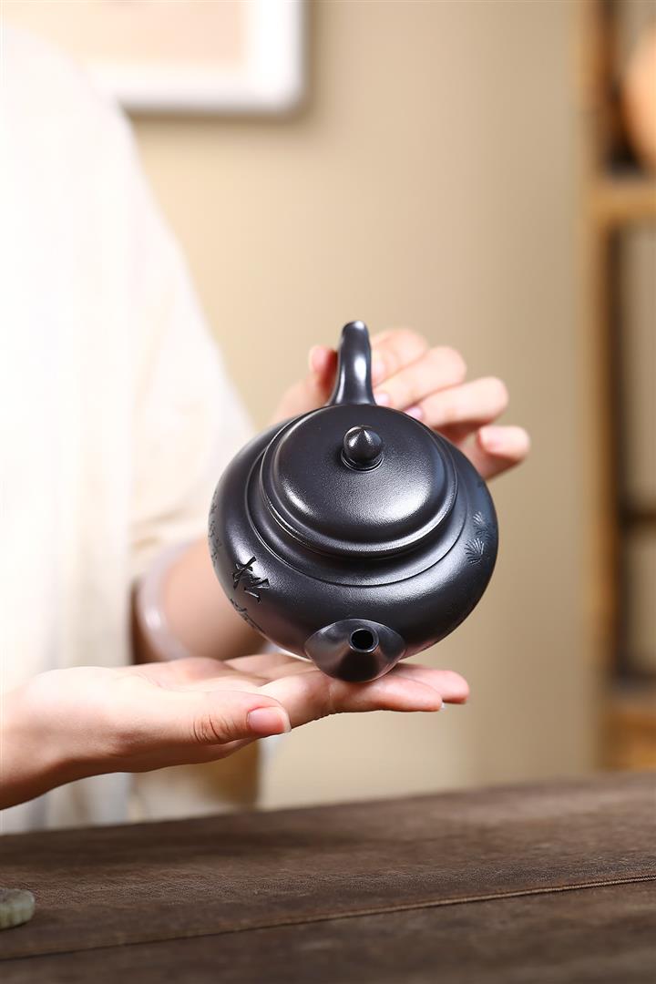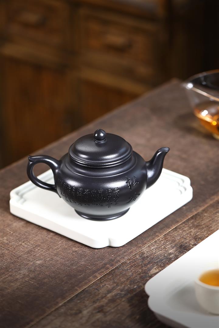 400cc原礦墨綠泥刻繪如意松趣茶壺POT8304