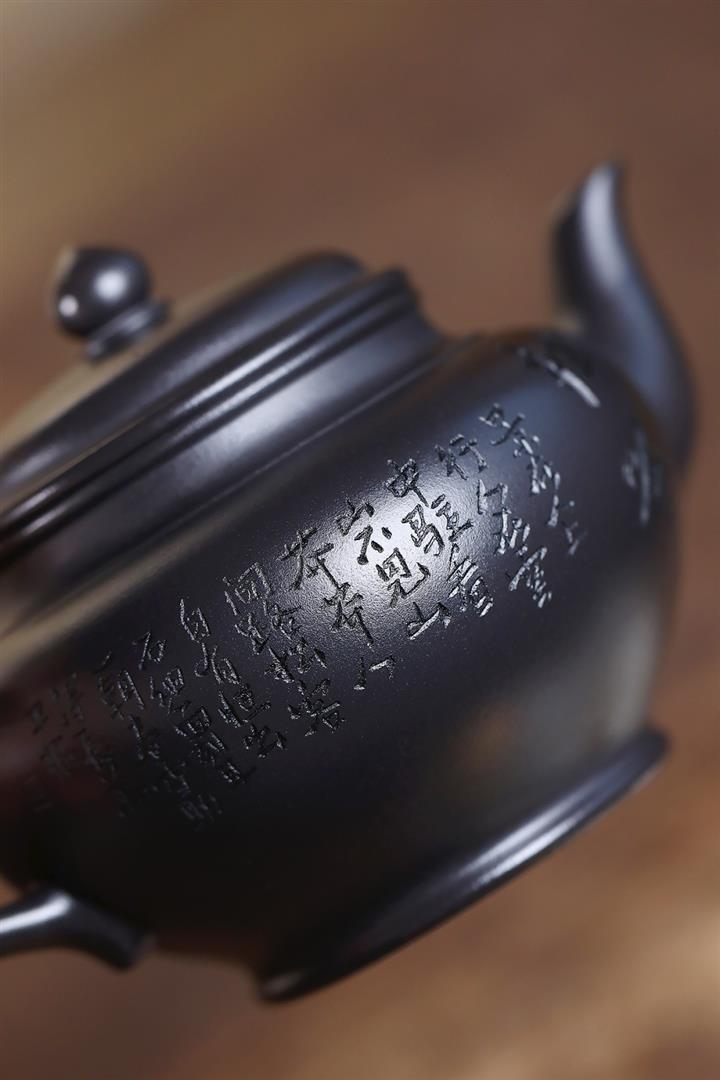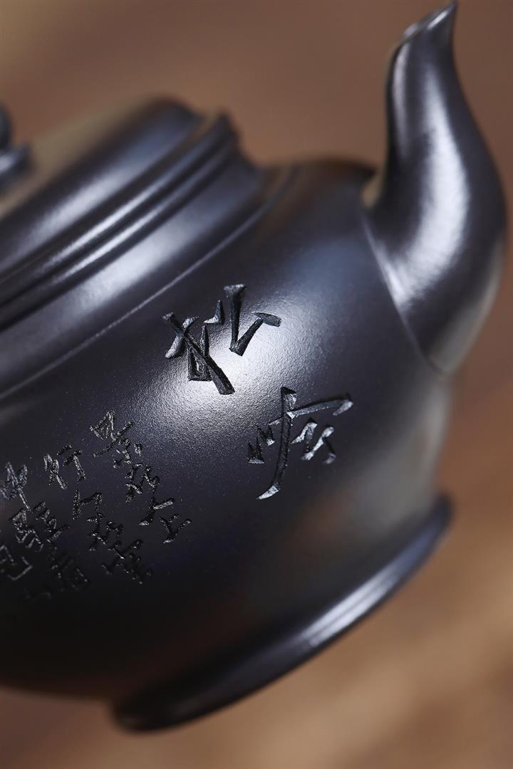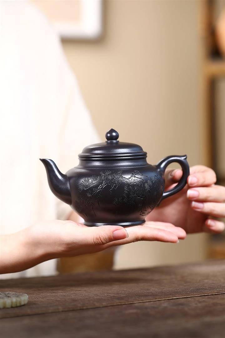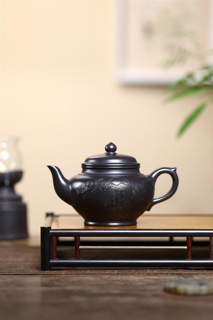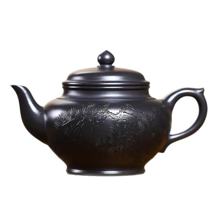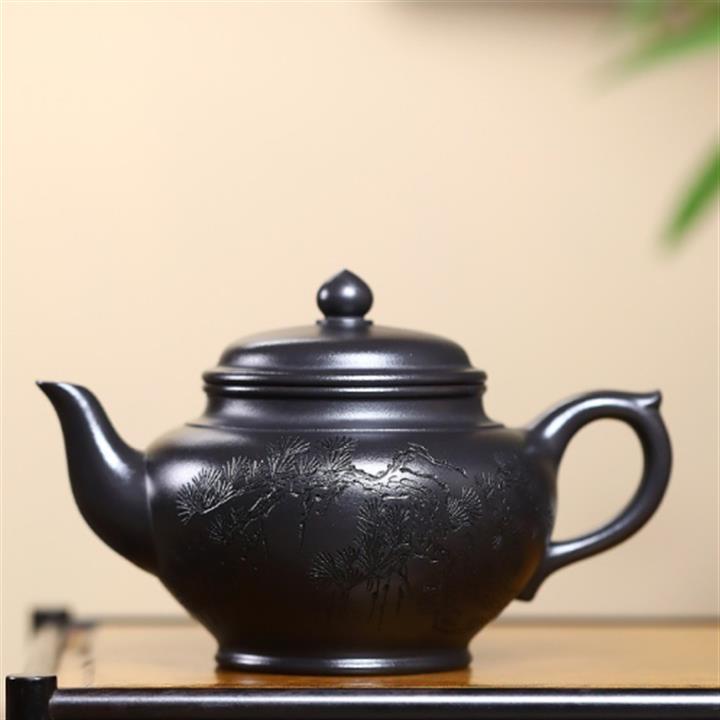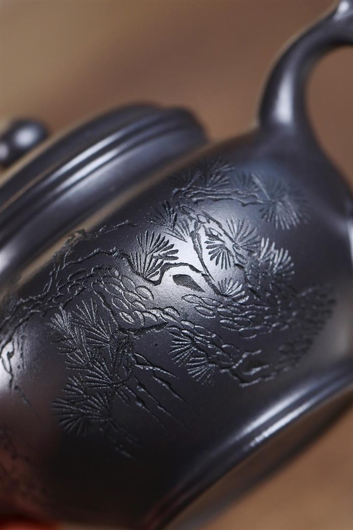 400cc原礦墨綠泥刻繪如意松趣茶壺POT8304