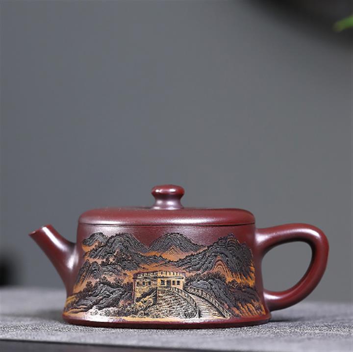 190cc原礦紫泥滿刻萬裏長城茶壺POT8310