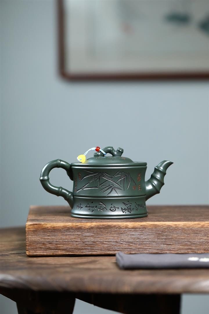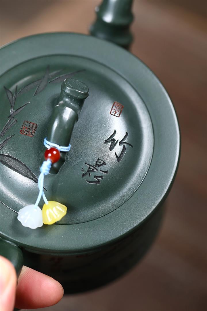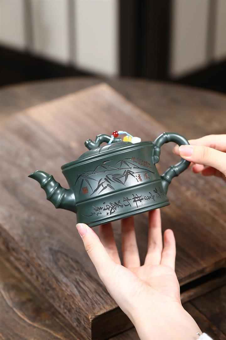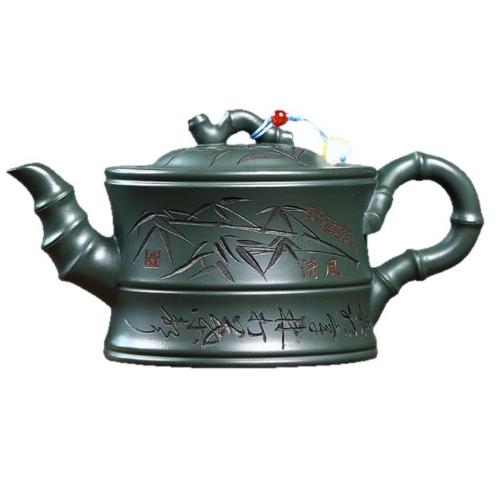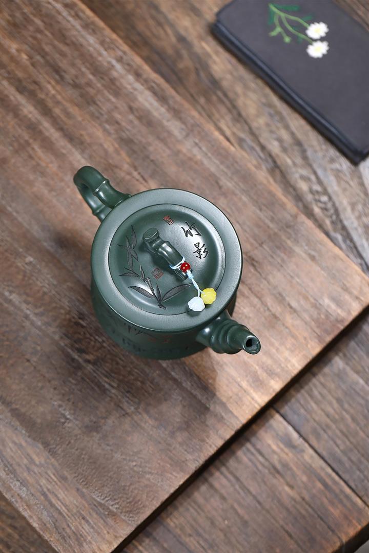 350cc原礦墨綠泥通身刻竹之清雅茶壺POT8302