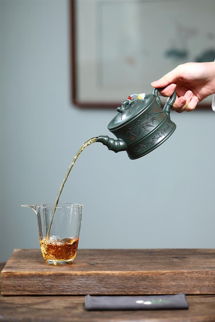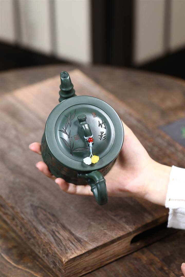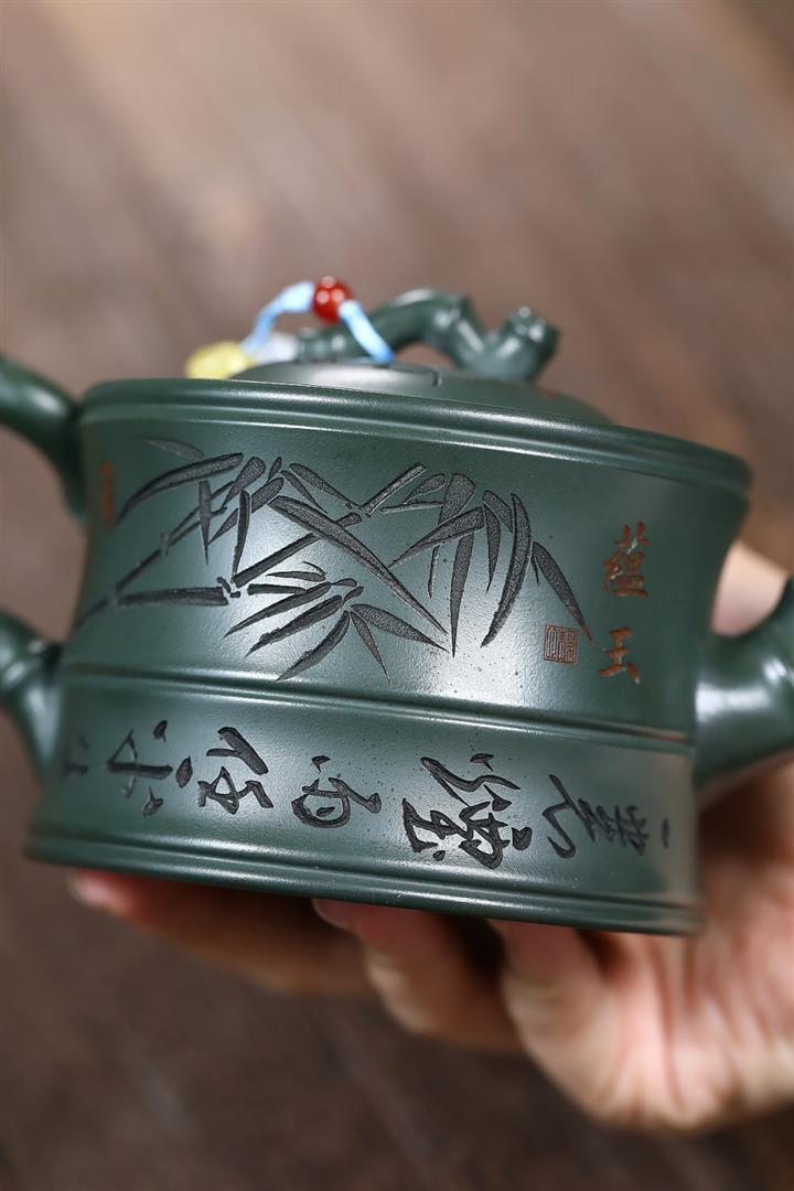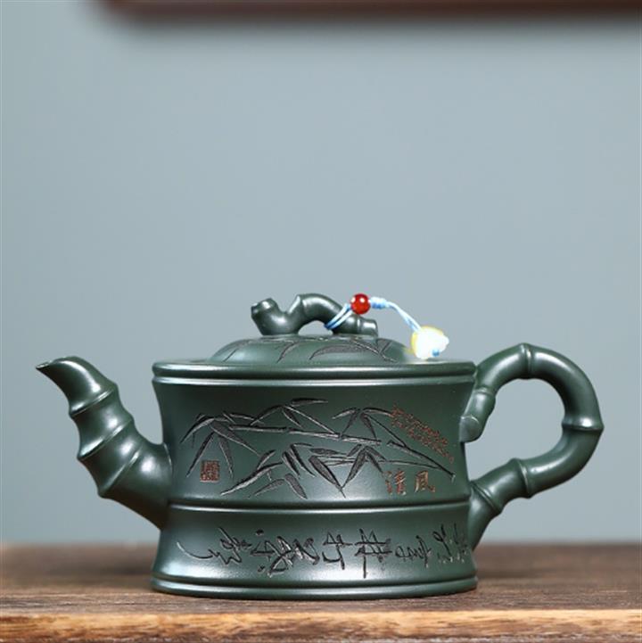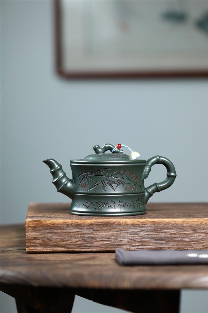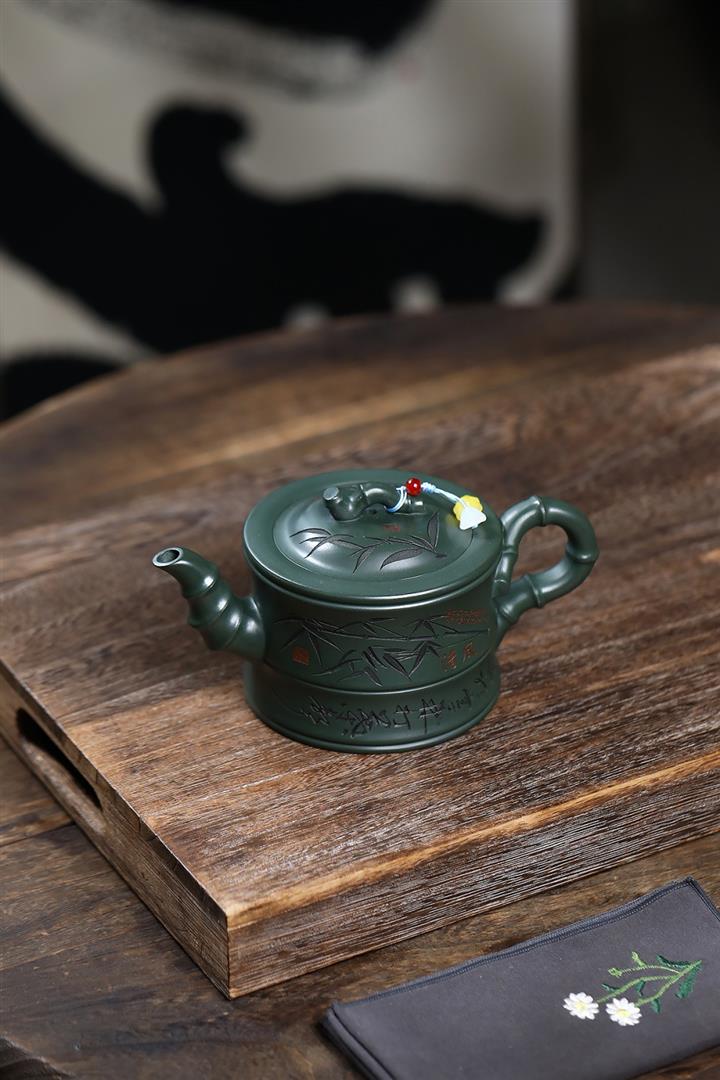 350cc原礦墨綠泥通身刻竹之清雅茶壺POT8302