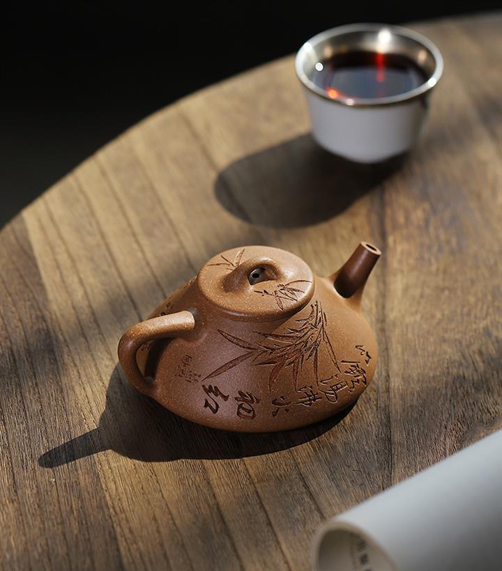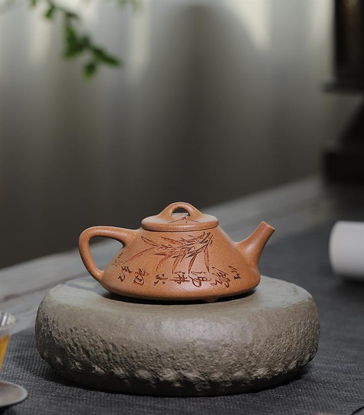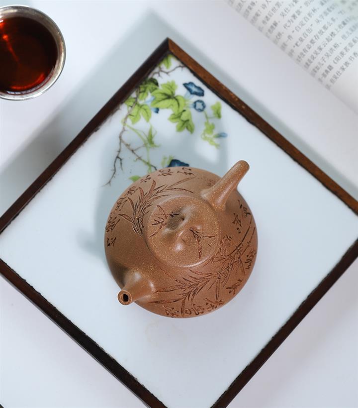 【泥料特點】砂土氣重,似淳實農民,日久使用,漸露鋒芒,養成變化,溫潤莊重。紫砂是壹種雙重氣孔結構的多孔性材質,氣孔微細,密度高。用紫砂壺沏茶,不失原味,且香不渙散,得茶之真香真味。紫砂使用越久,壺身色澤越發光亮照人,氣韻溫雅。紫砂壺長久使用器身會因撫摸擦拭,變得越發溫潤光澤。
