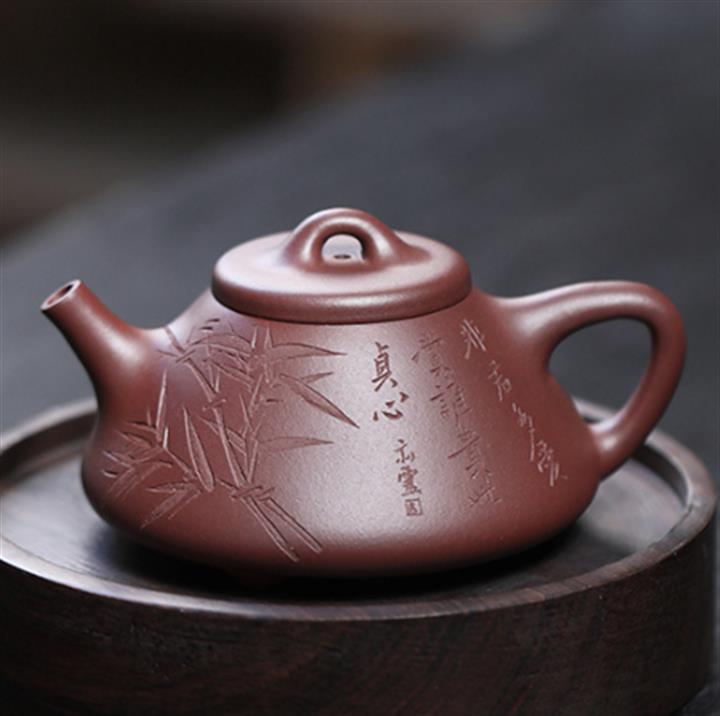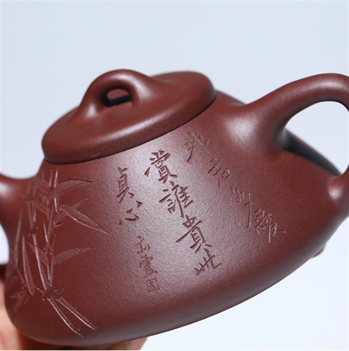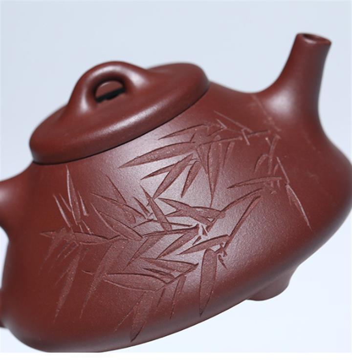 160cc原礦紅皮龍紫砂雙線竹鼓茶壺POT8318