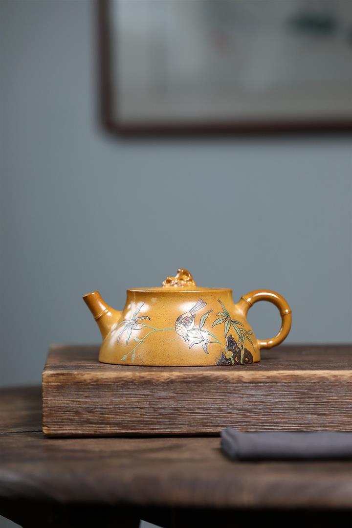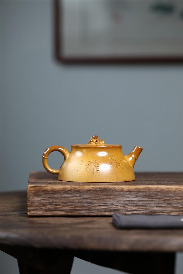 【作品介紹】此款壺形線條流暢,壺把,壺嘴,壺身壹氣呵成栩栩如生,是收藏把玩的好壺,泥料色澤古樸典雅,日久使用,漸露鋒芒,養成變化快,溫潤莊重,用其泡茶,使用的年代久,壺身就溫潤,泡出來的茶湯也就醇郁芳馨。