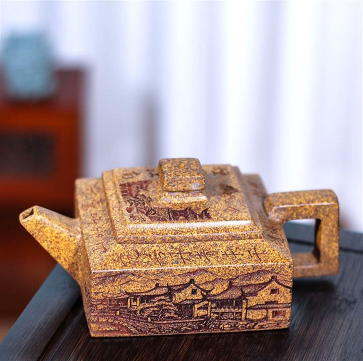 800cc原礦古銅泥滿刻踏雪尋巔茶壺POT8324