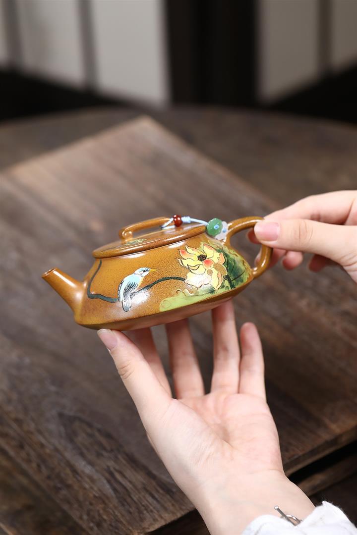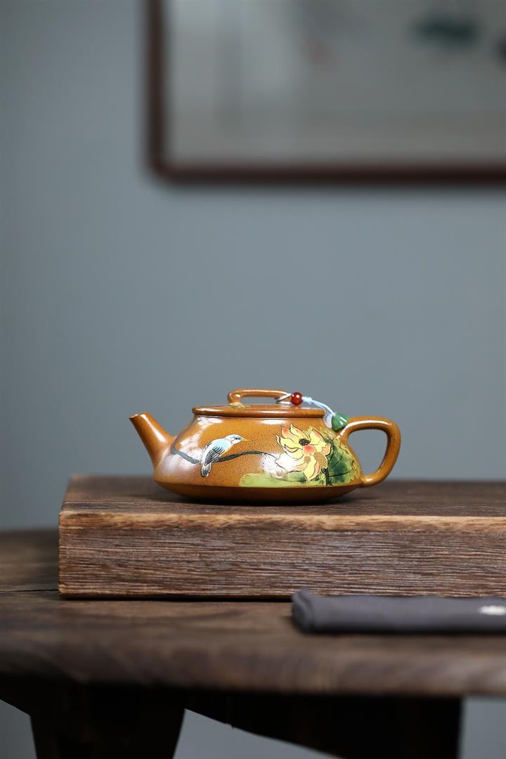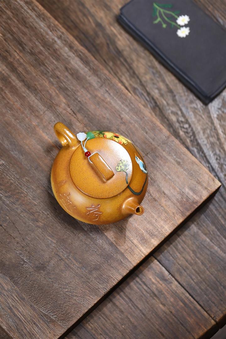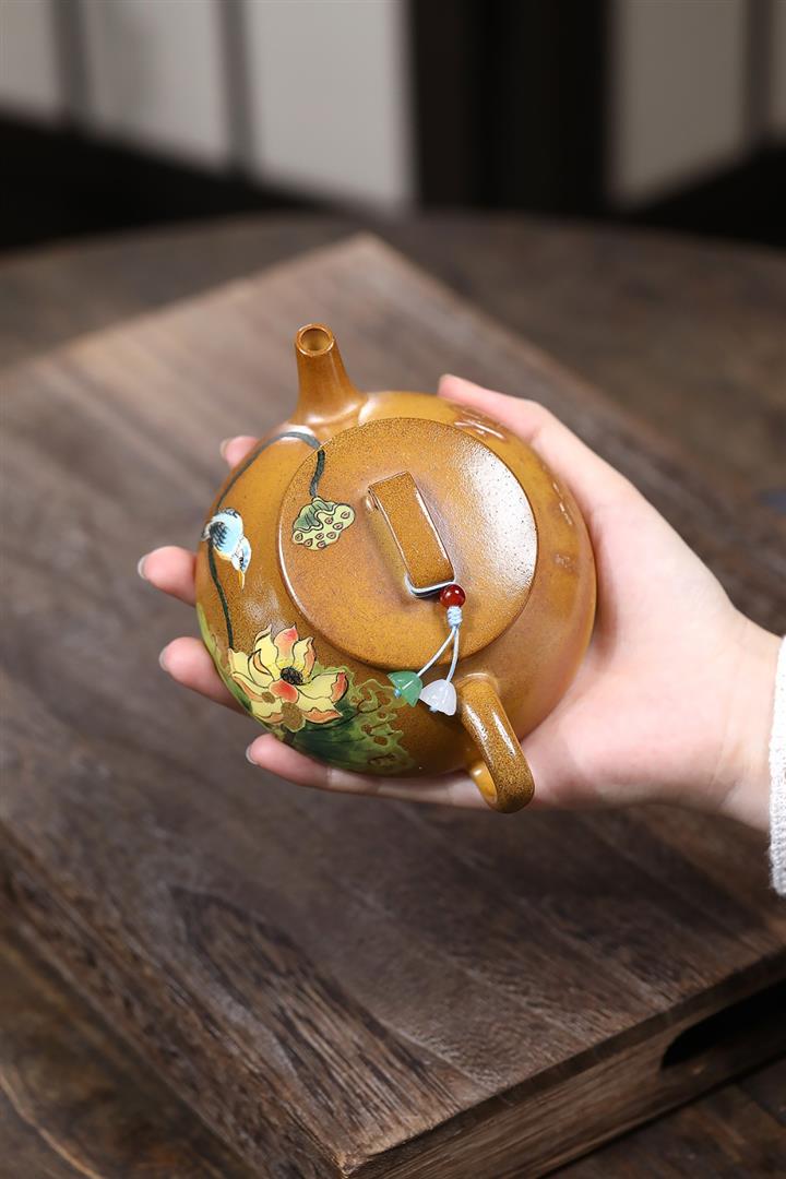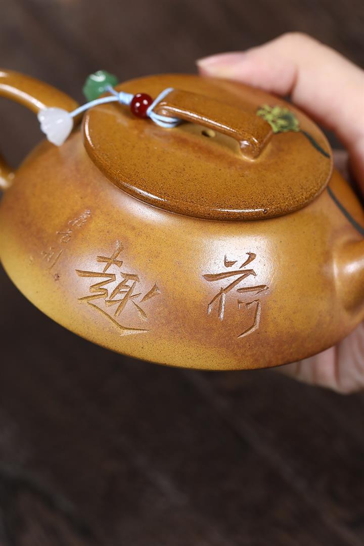 200cc原礦黃金段泥高溫柴燒荷趣韻瓢壺POT8321