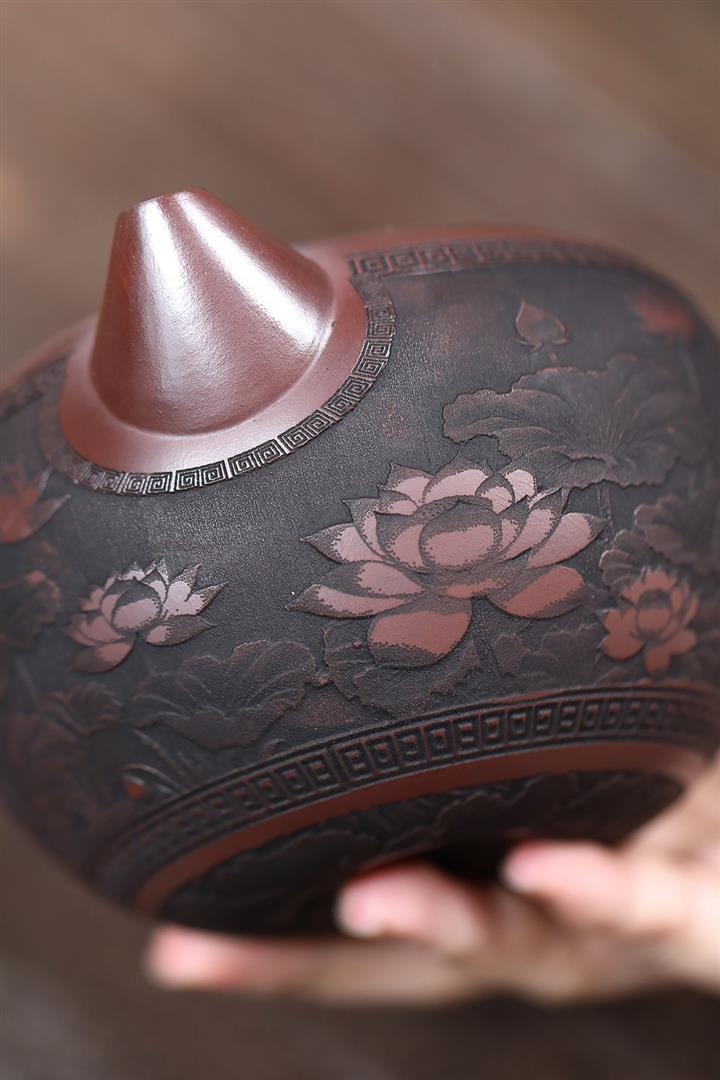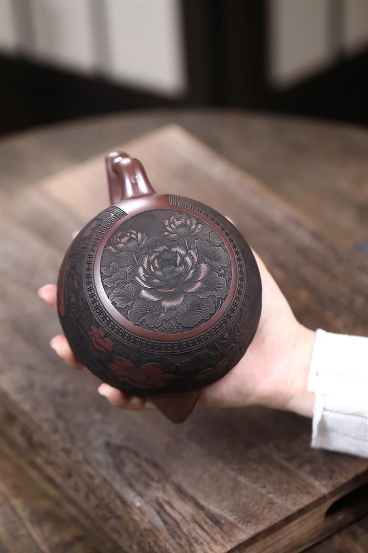 600cc原礦古紅泥荷運連連蘋果壺POT8325