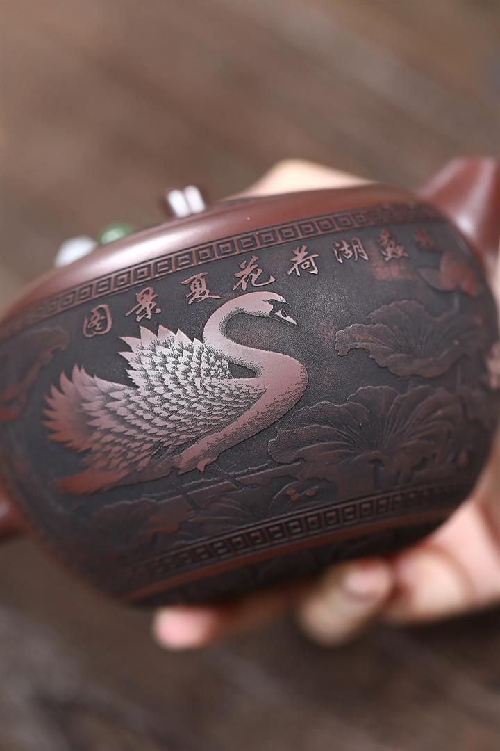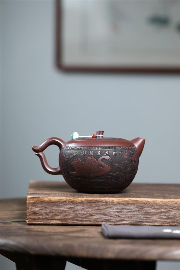 680cc原礦石紅泥滿刻春亭苑景茶壺POT8335