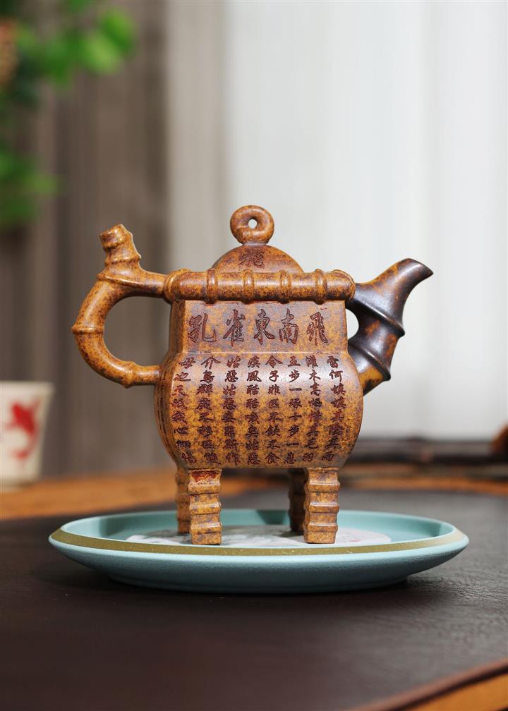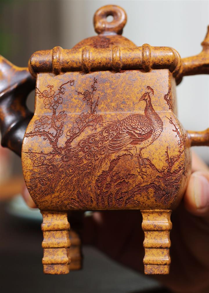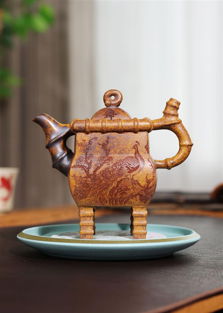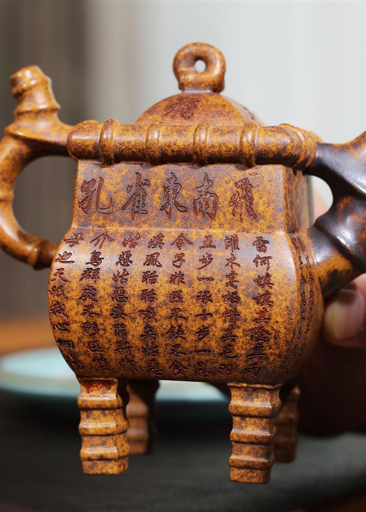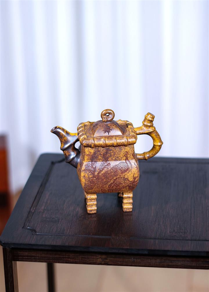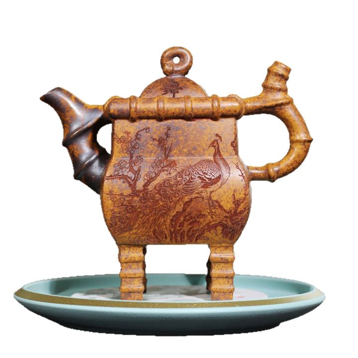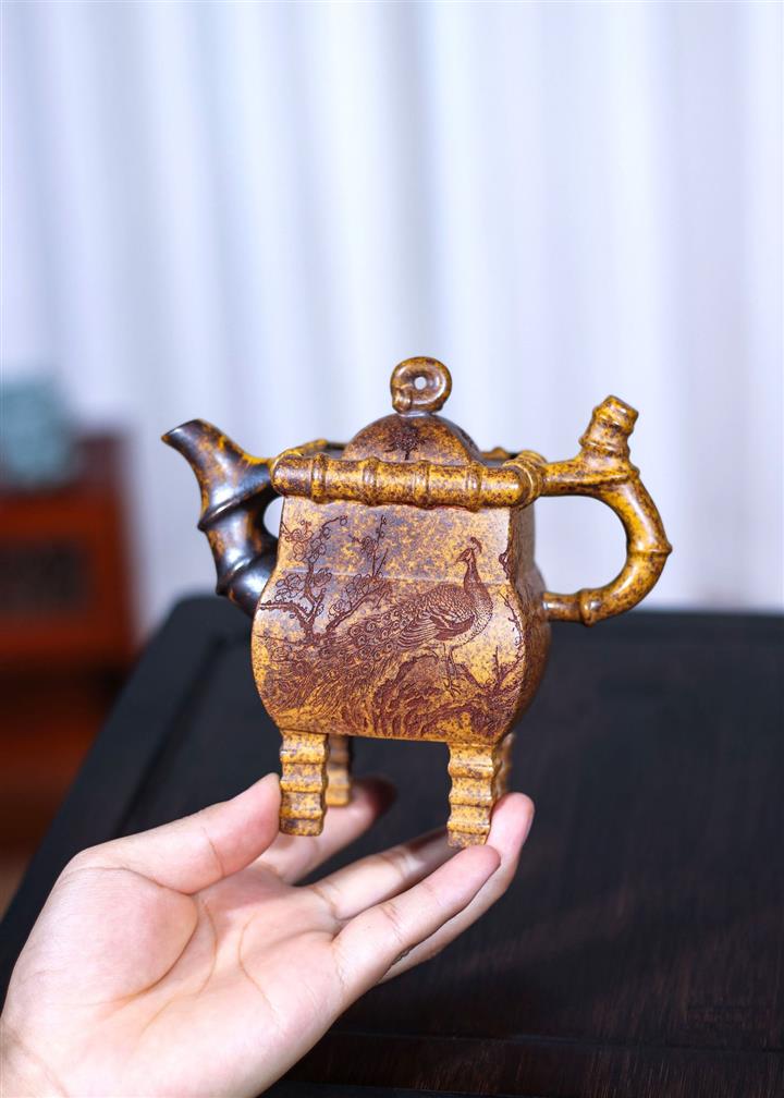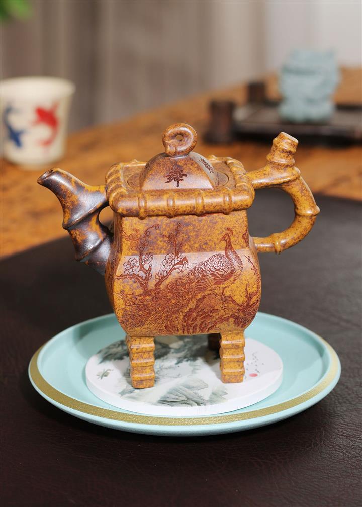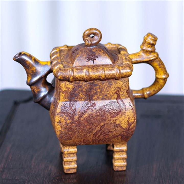 250cc龍骨金砂四方竹石孔雀東南飛茶壺POT8331