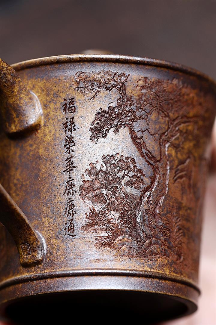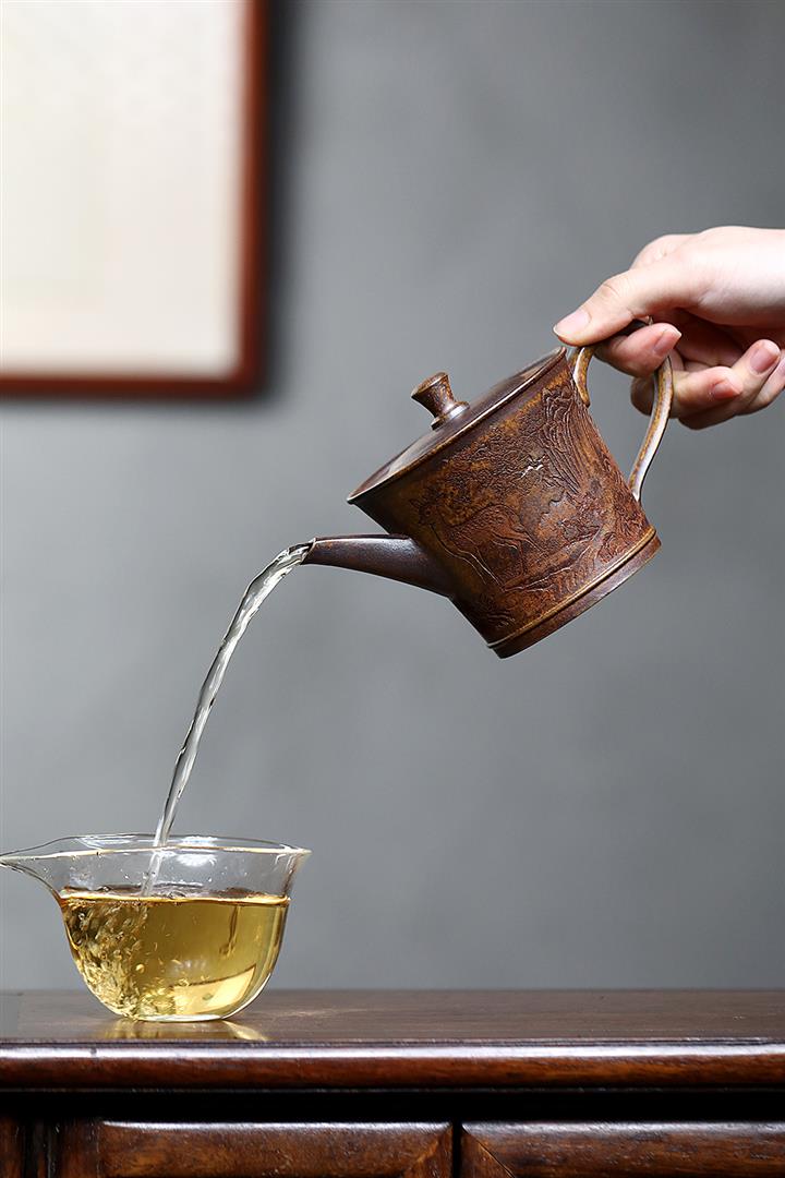 【泥料特點】砂土氣重,似淳實農民,日久使用,漸露鋒芒,養成變化,溫潤莊重。紫砂是壹種雙重氣孔結構的多孔性材質,氣孔微細,密度高。用紫砂壺沏茶,不失原味,且香不渙散,得茶之真香真味。紫砂使用越久,壺身色澤越發光亮照人,氣韻溫雅。紫砂壺長久使用器身會因撫摸擦拭,變得越發溫潤光澤。
