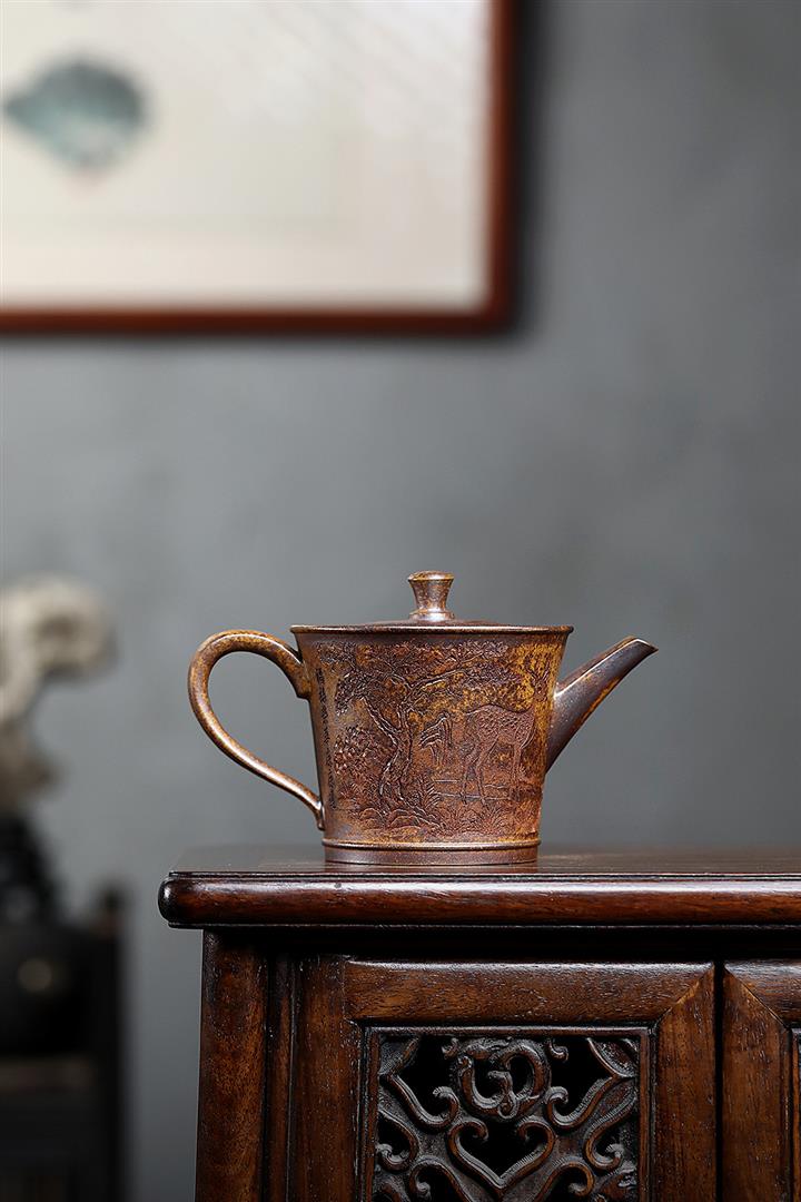 200cc原礦文革紫泥茄瓜微刻茶壺POT8346