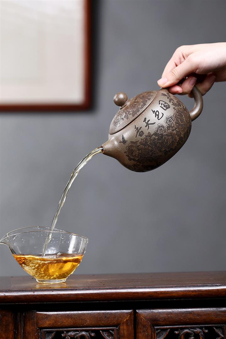 【泥料特點】砂土氣重,似淳實農民,日久使用,漸露鋒芒,養成變化,溫潤莊重。紫砂是壹種雙重氣孔結構的多孔性材質,氣孔微細,密度高。用紫砂壺沏茶,不失原味,且香不渙散,得茶之真香真味。紫砂使用越久,壺身色澤越發光亮照人,氣韻溫雅。紫砂壺長久使用器身會因撫摸擦拭,變得越發溫潤光澤。