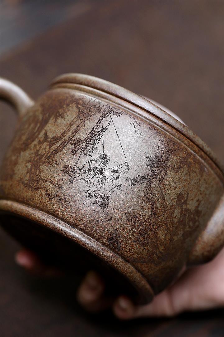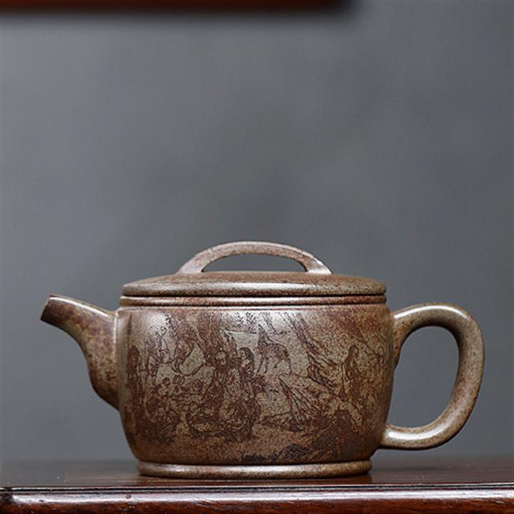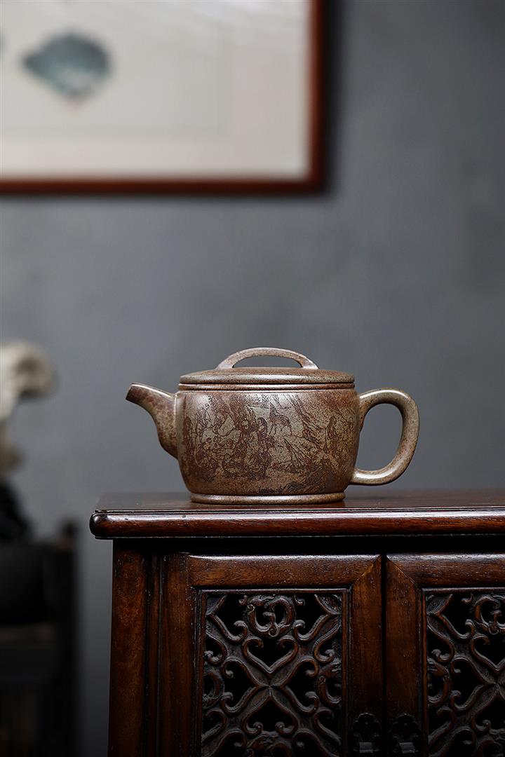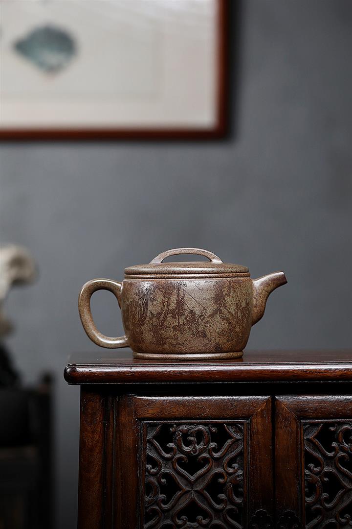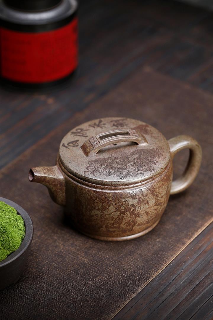 180cc原礦綠泥牛蓋刻繪茶壺POT8351