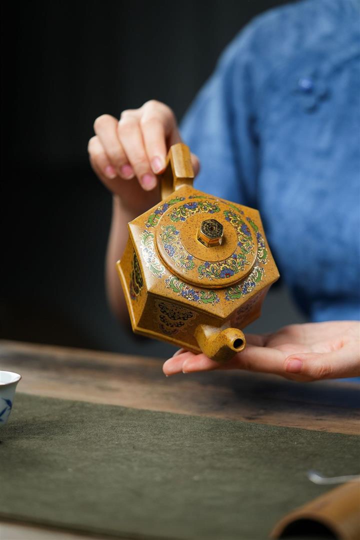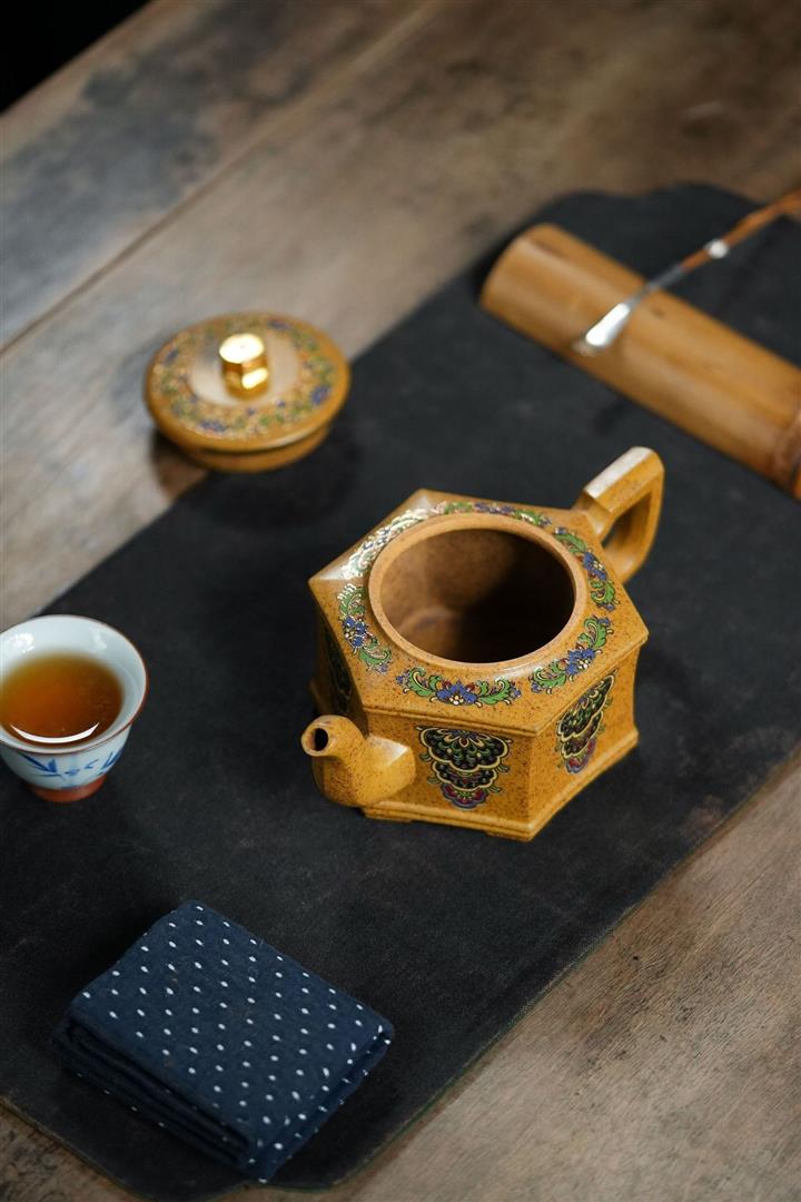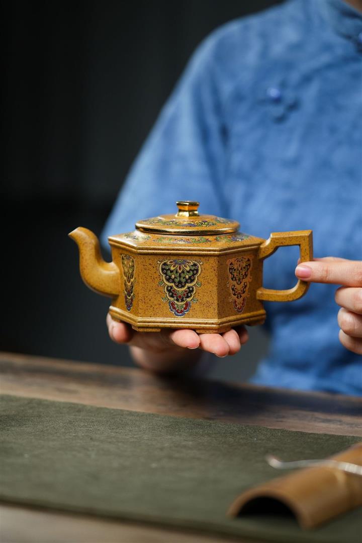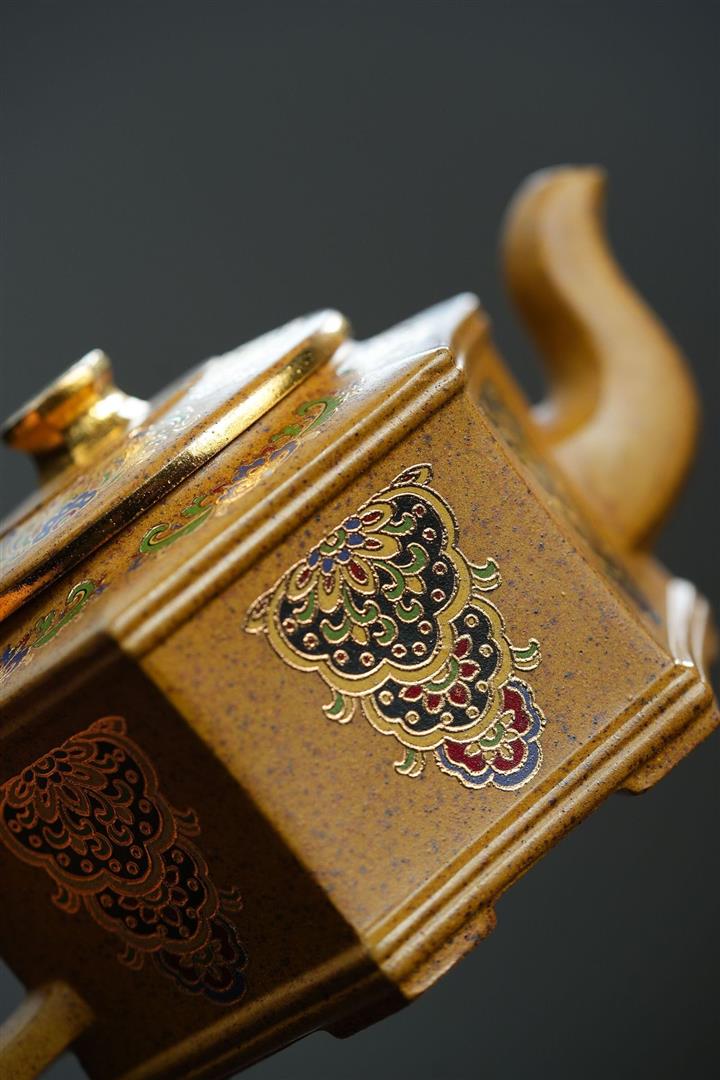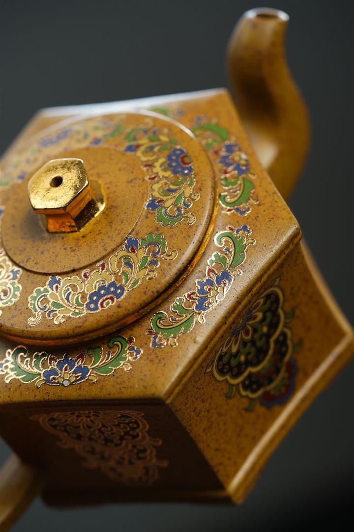 350cc原礦龍骨金砂琺瑯彩六方壺POT8343