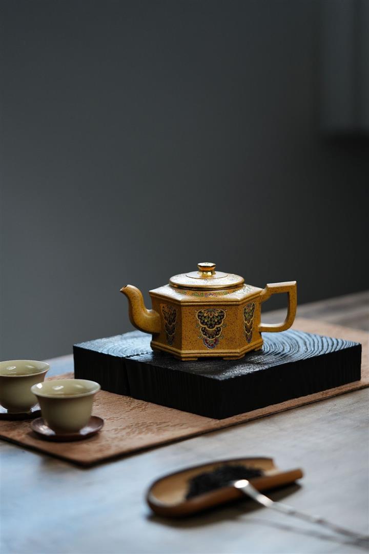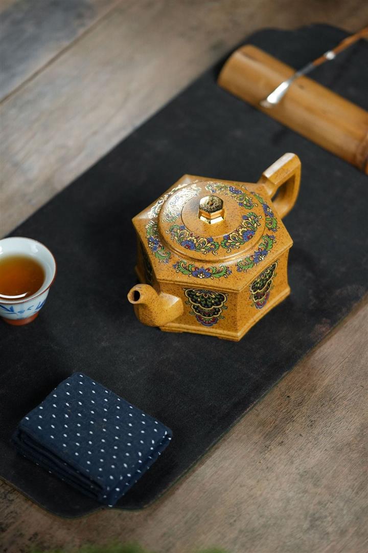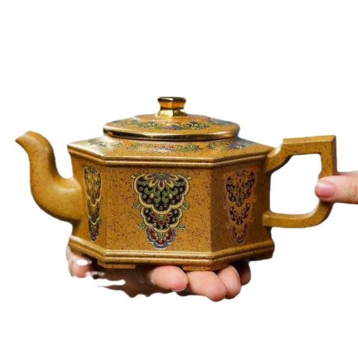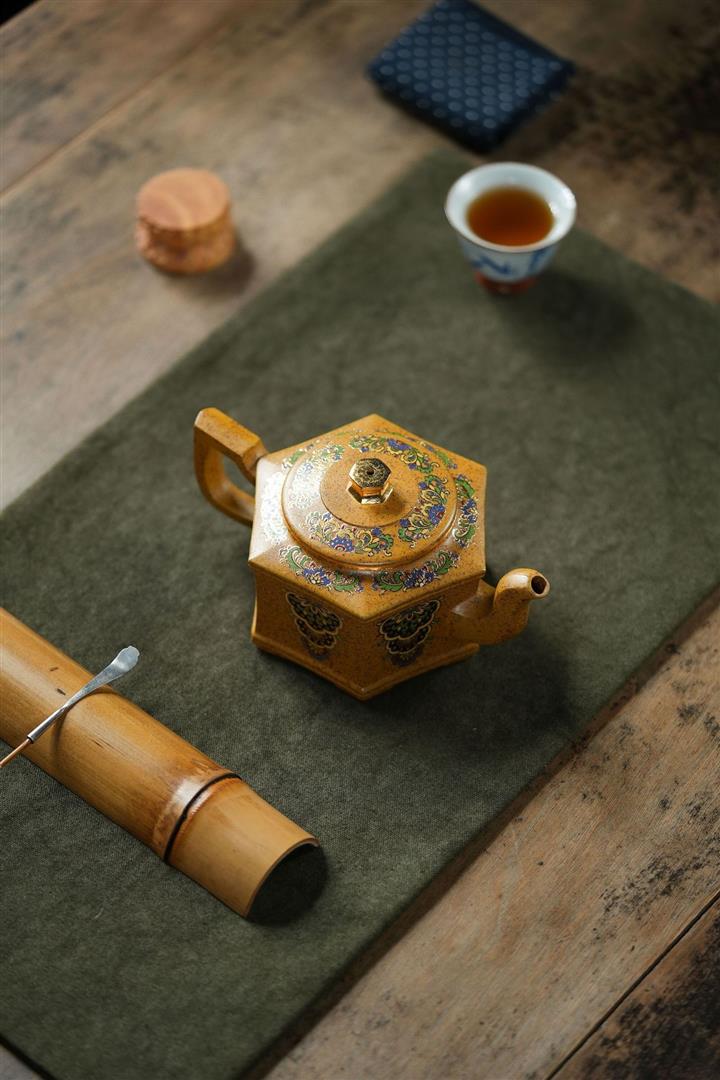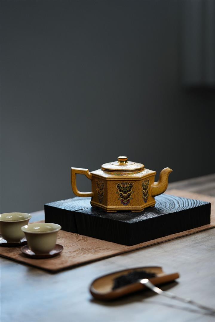 350cc原礦龍骨金砂琺瑯彩六方壺POT8343