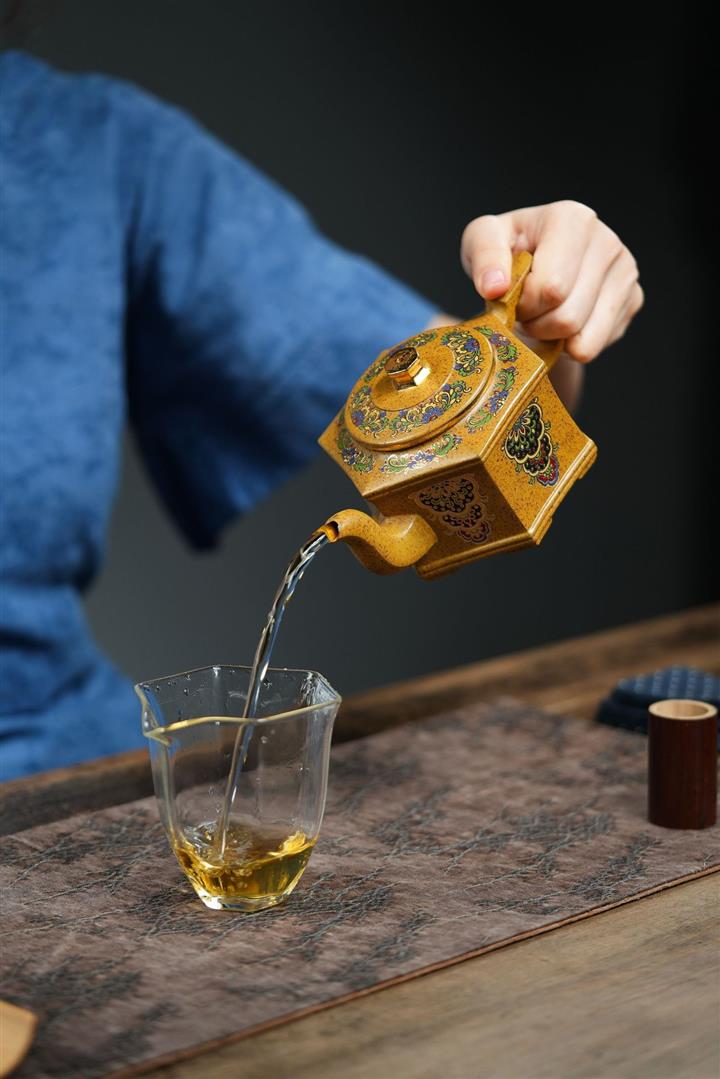 【泥料特點】砂土氣重,似淳實農民,日久使用,漸露鋒芒,養成變化,溫潤莊重。紫砂是壹種雙重氣孔結構的多孔性材質,氣孔微細,密度高。用紫砂壺沏茶,不失原味,且香不渙散,得茶之真香真味。紫砂使用越久,壺身色澤越發光亮照人,氣韻溫雅。紫砂壺長久使用器身會因撫摸擦拭,變得越發溫潤光澤。