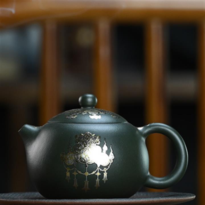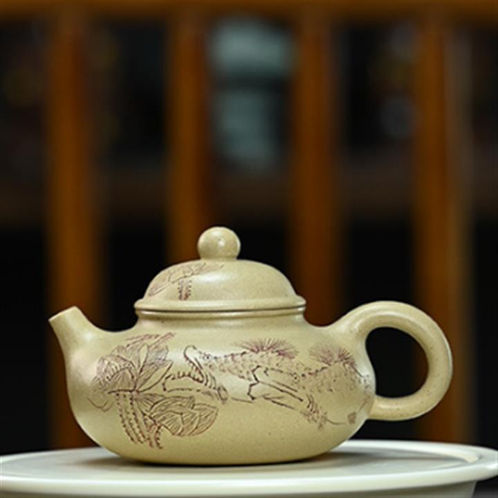 180cc原礦綠泥牛蓋刻繪茶壺POT8351