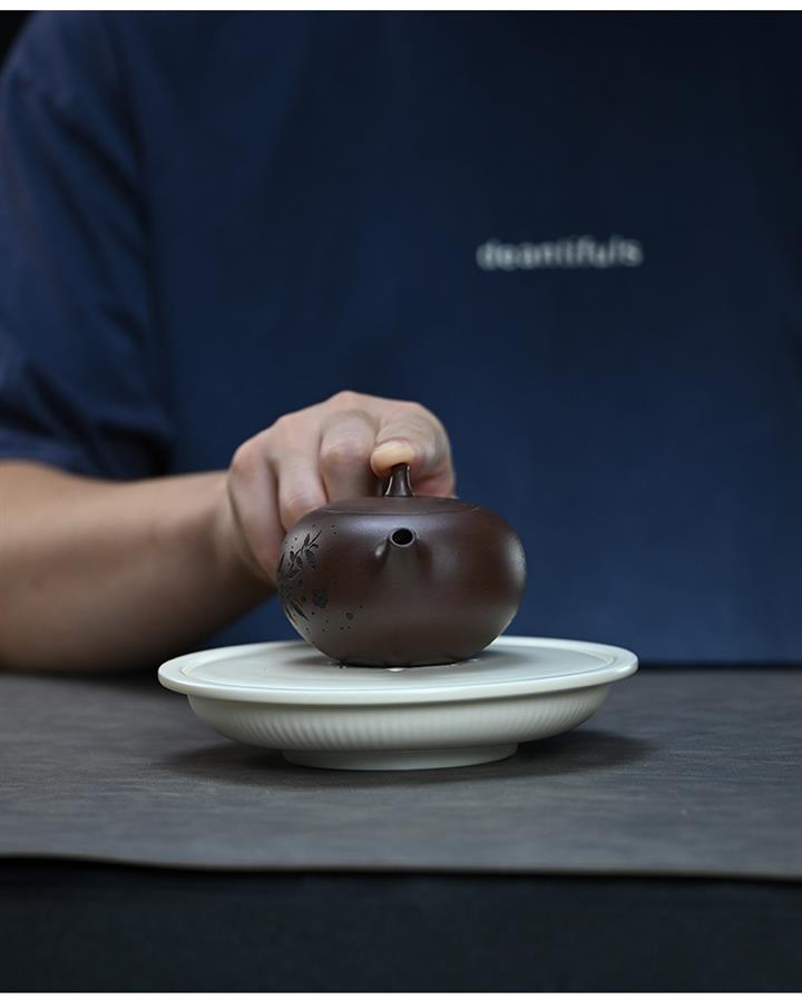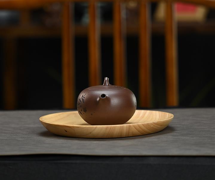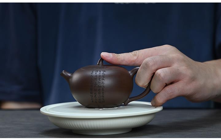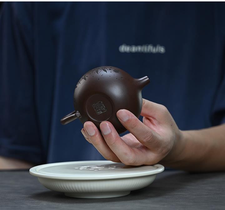 【泥料特點】砂土氣重,似淳實農民,日久使用,漸露鋒芒,養成變化,溫潤莊重。紫砂是壹種雙重氣孔結構的多孔性材質,氣孔微細,密度高。用紫砂壺沏茶,不失原味,且香不渙散,得茶之真香真味。紫砂使用越久,壺身色澤越發光亮照人,氣韻溫雅。紫砂壺長久使用器身會因撫摸擦拭,變得越發溫潤光澤。