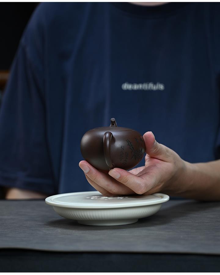 【作品介紹】此款壺形線條流暢,壺把,壺嘴,壺身壹氣呵成栩栩如生,是收藏把玩的好壺,泥料色澤古樸典雅,日久使用,漸露鋒芒,養成變化快,溫潤莊重,用其泡茶,使用的年代久,壺身就溫潤,泡出來的茶湯也就醇郁芳馨。