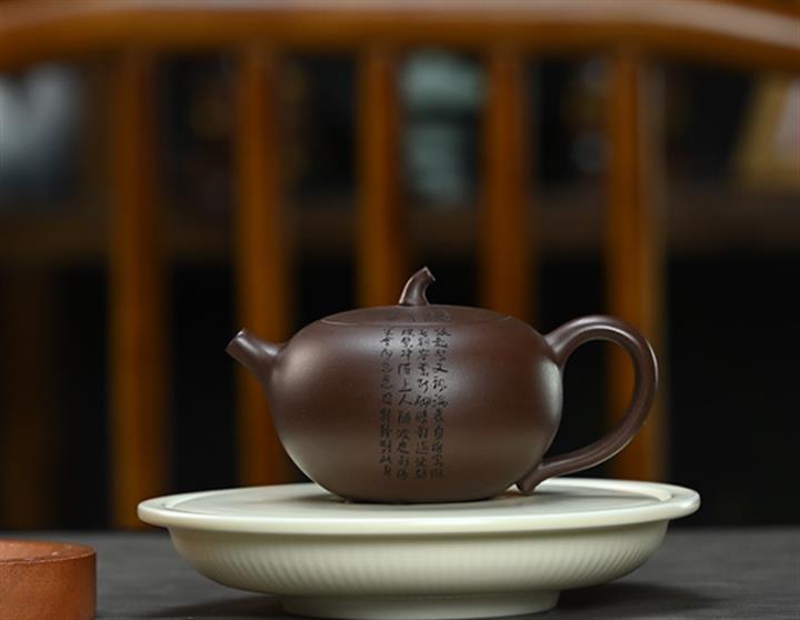 200cc原礦文革紫泥茄瓜微刻茶壺POT8346