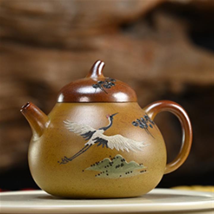 190cc原礦段泥仙鶴茄瓜泥繪茶壺POT8356