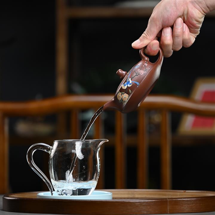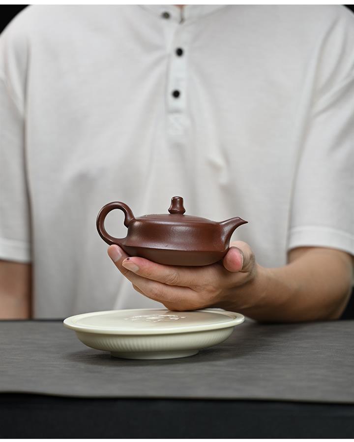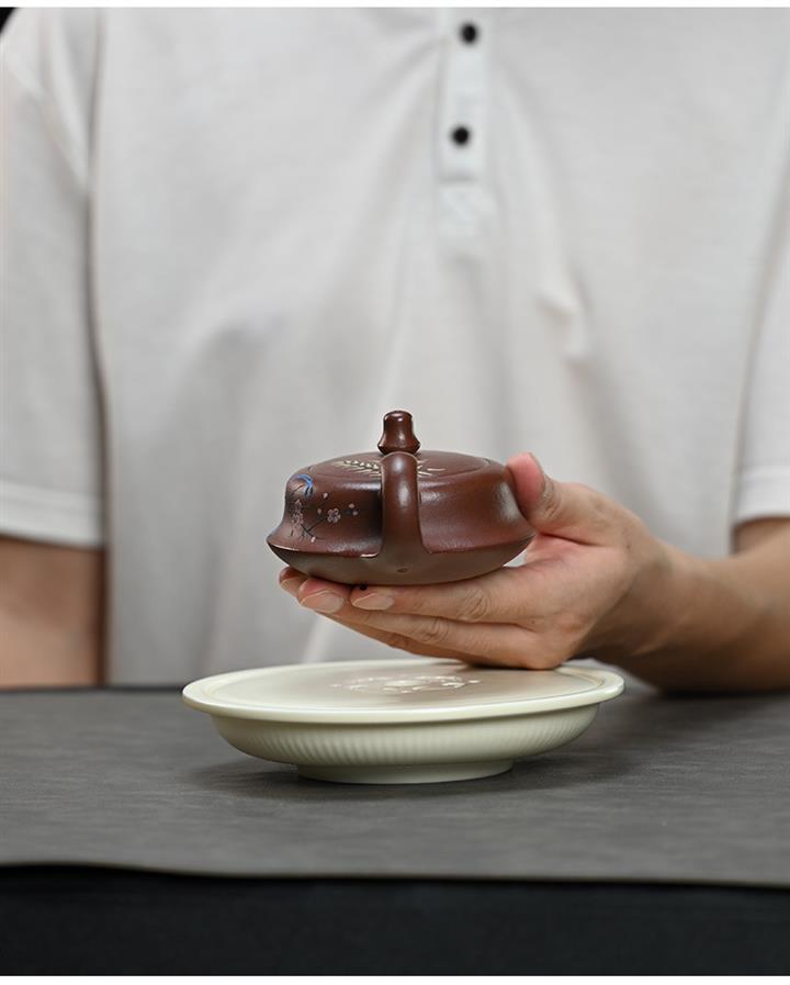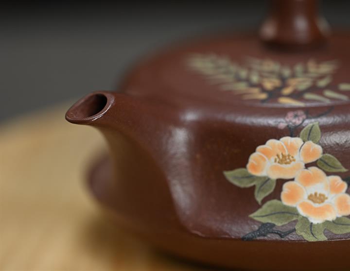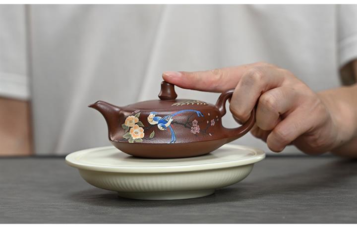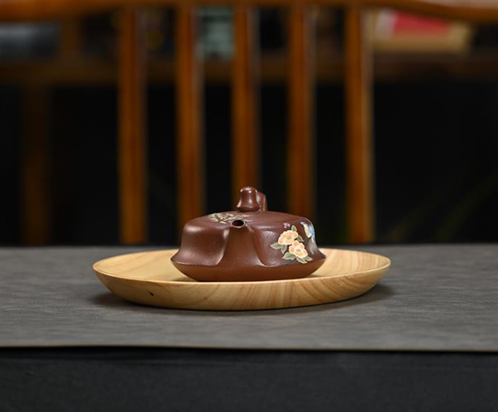【泥料特點】砂土氣重,似淳實農民,日久使用,漸露鋒芒,養成變化,溫潤莊重。紫砂是壹種雙重氣孔結構的多孔性材質,氣孔微細,密度高。用紫砂壺沏茶,不失原味,且香不渙散,得茶之真香真味。紫砂使用越久,壺身色澤越發光亮照人,氣韻溫雅。紫砂壺長久使用器身會因撫摸擦拭,變得越發溫潤光澤。