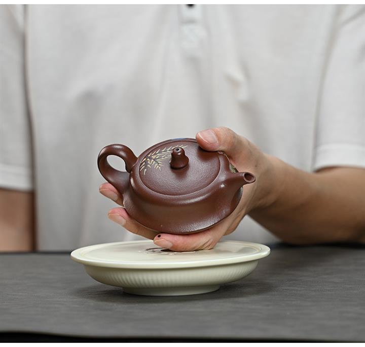 【作品介紹】此款壺形線條流暢,壺把,壺嘴,壺身壹氣呵成栩栩如生,是收藏把玩的好壺,泥料色澤古樸典雅,日久使用,漸露鋒芒,養成變化快,溫潤莊重,用其泡茶,使用的年代久,壺身就溫潤,泡出來的茶湯也就醇郁芳馨。